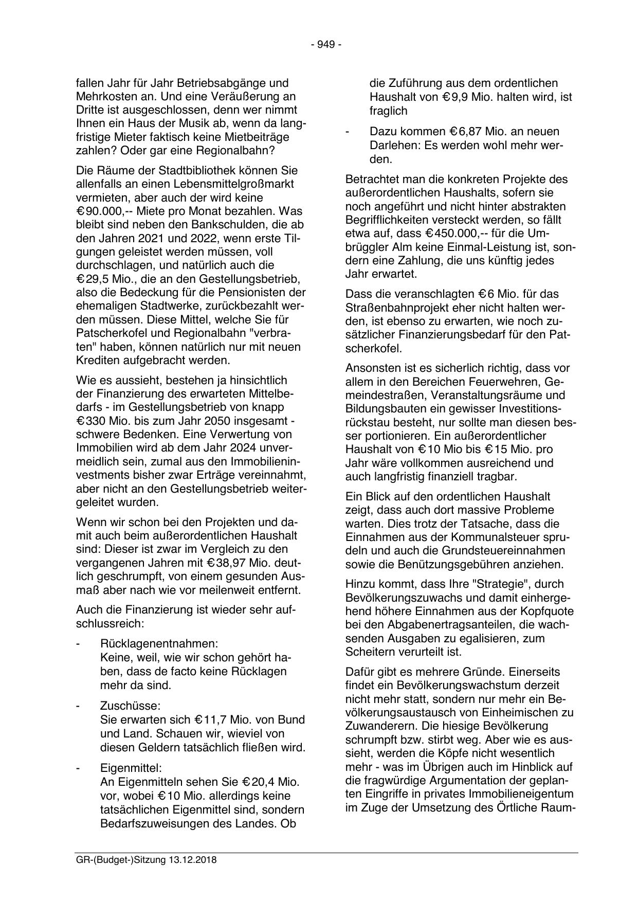 Bildungsbauten ein gewisser Investitionsrückstau besteht, nur sollte man diesen besser portionieren. Ein außerordentlicher