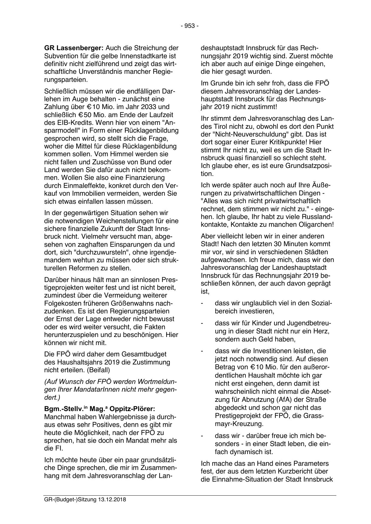 diesem Jahresvoranschlag der Landeshauptstadt Innsbruck für das Rechnungsjahr 2019 nicht zustimmt!
