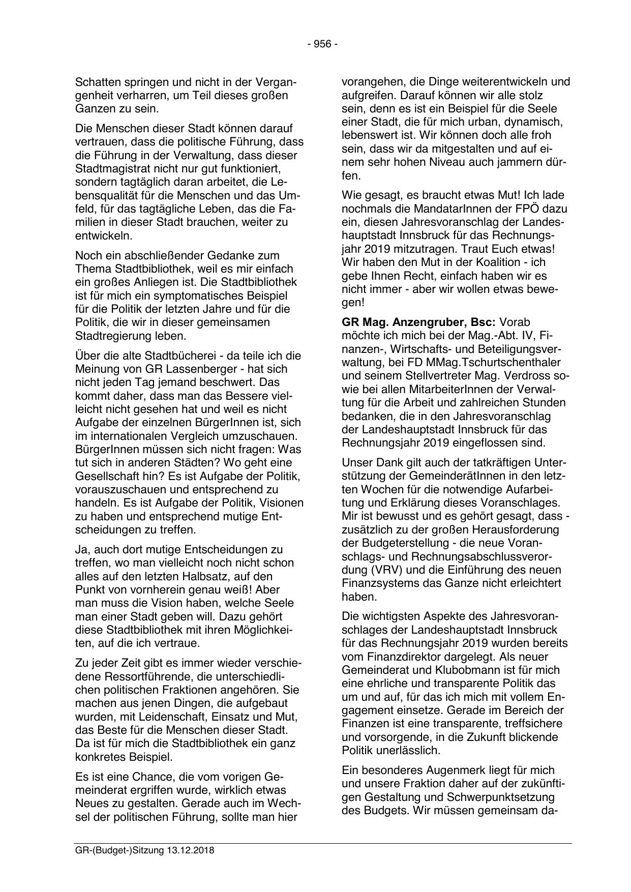 ein, diesen Jahresvoranschlag der Landeshauptstadt Innsbruck für das Rechnungsjahr 2019 mitzutragen. Traut Euch etwas!