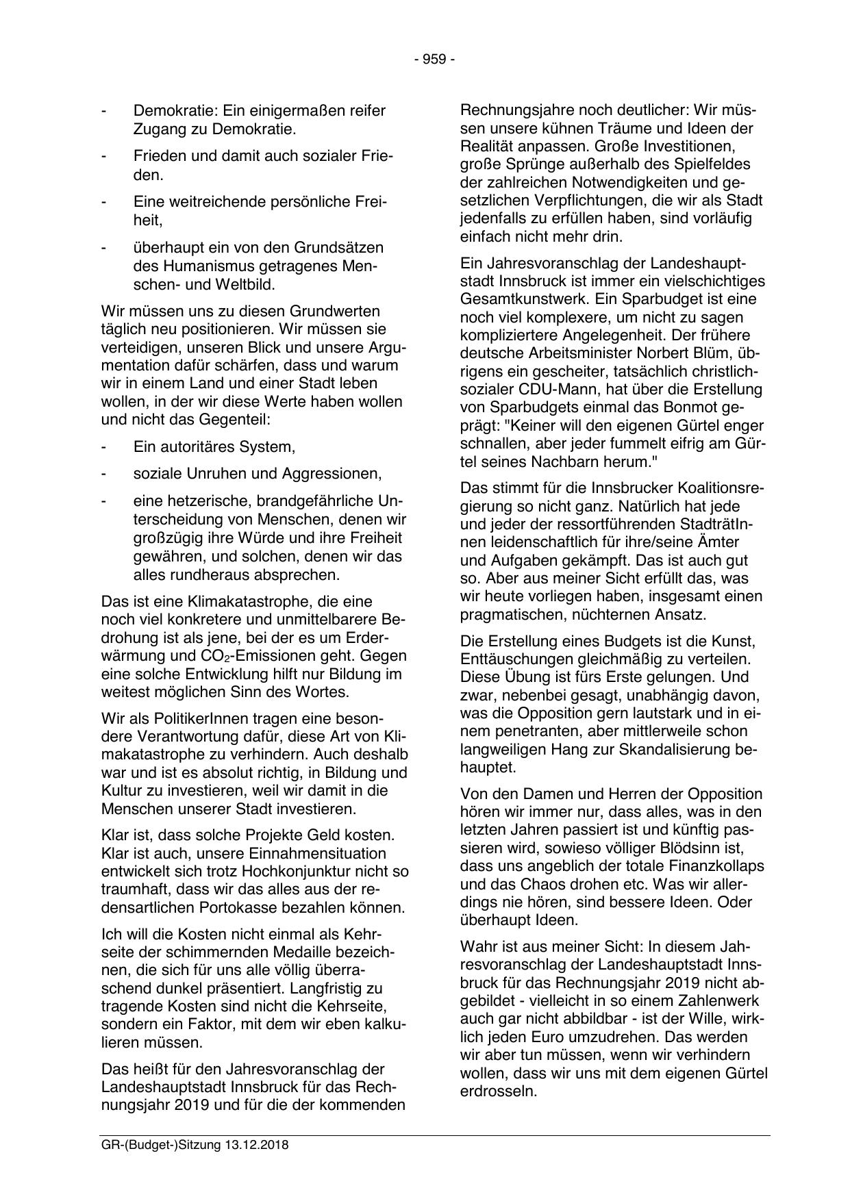 Wahr ist aus meiner Sicht: In diesem Jahresvoranschlag der Landeshauptstadt Innsbruck für das Rechnungsjahr 2019 nicht abgebildet - vielleicht in so einem Zahlenwerk