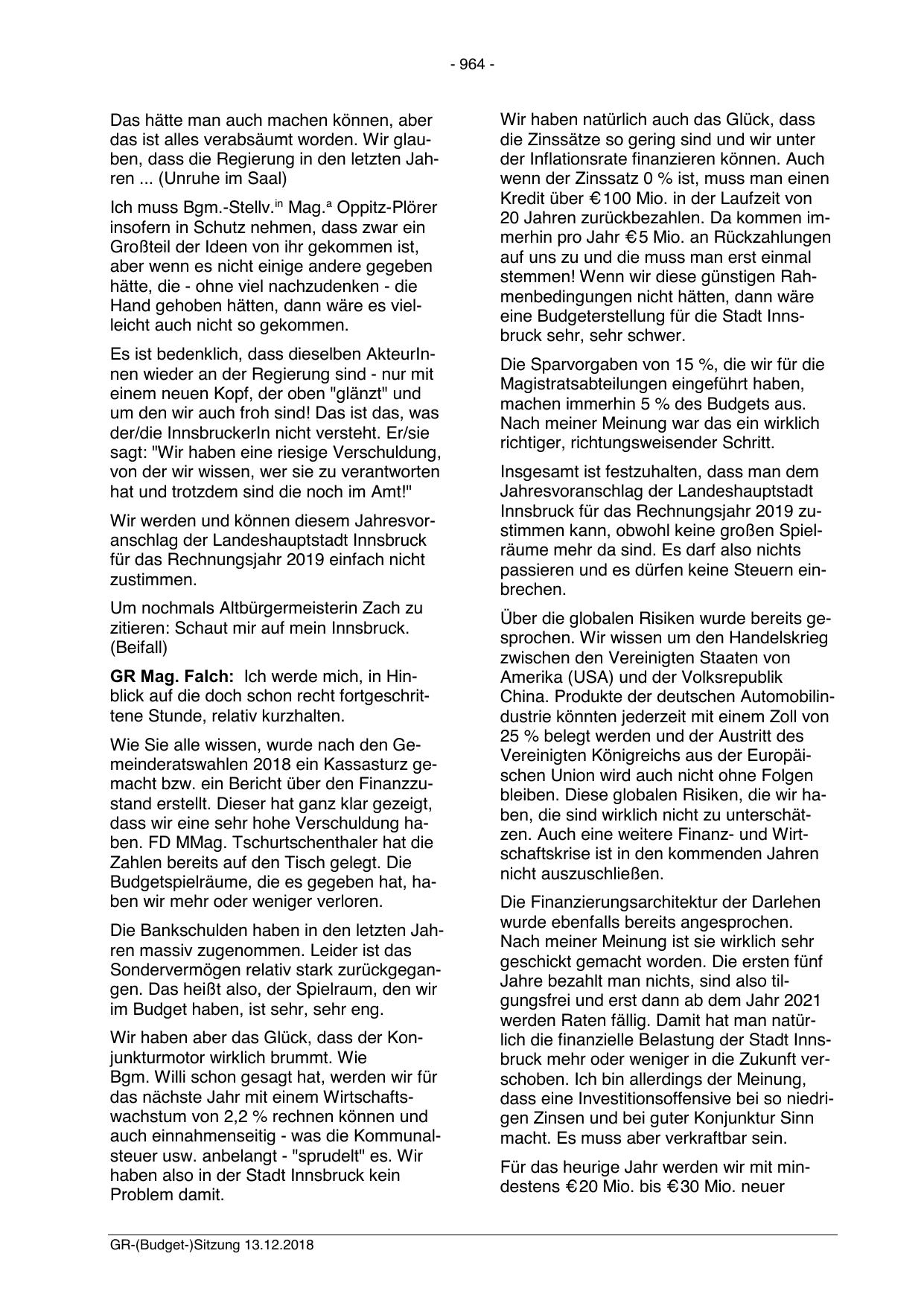 Innsbruck für das Rechnungsjahr 2019 zustimmen kann, obwohl keine großen Spielräume mehr da sind. Es darf also nichts