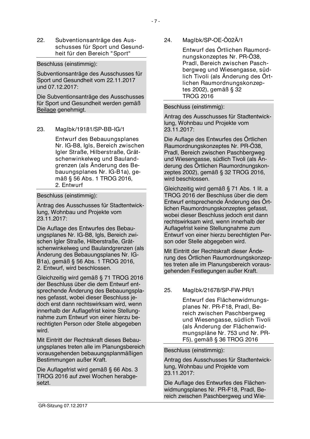 (als Änderung der Flächenwidmungspläne Nr. 753 und Nr. PRF5), gemäß § 36 TROG 2016