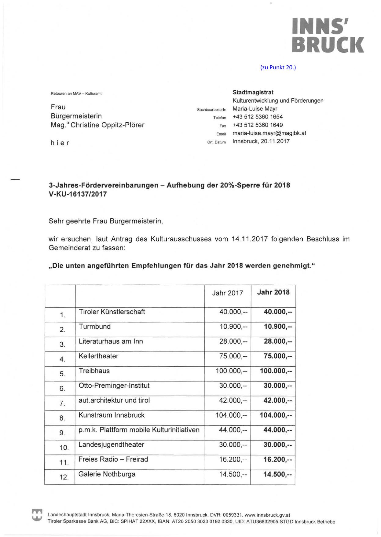 wir ersuchen , laut Antrag des Kulturausschusses vom 14.11 .2017 folgenden Beschluss im