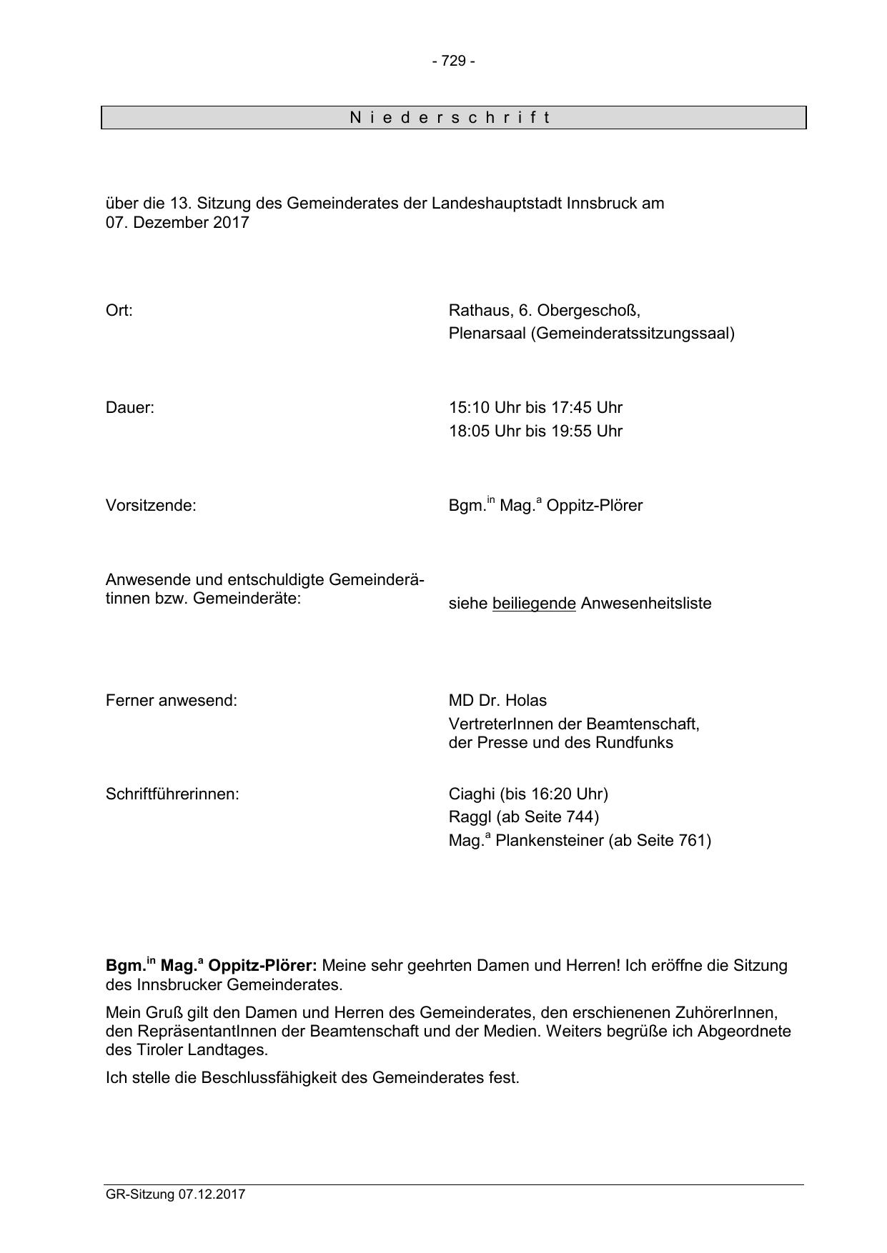 Bgm.in Mag.a Oppitz-Plörer: Meine sehr geehrten Damen und Herren! Ich eröffne die Sitzung