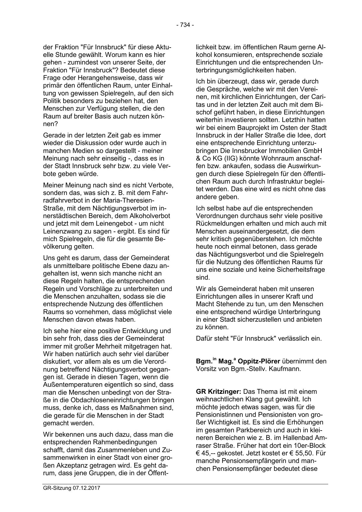 sondern das, was sich z. B. mit dem Fahrradfahrverbot in der Maria-TheresienStraße, mit dem Nächtigungsverbot im innerstädtischen Bereich, dem Alkoholverbot