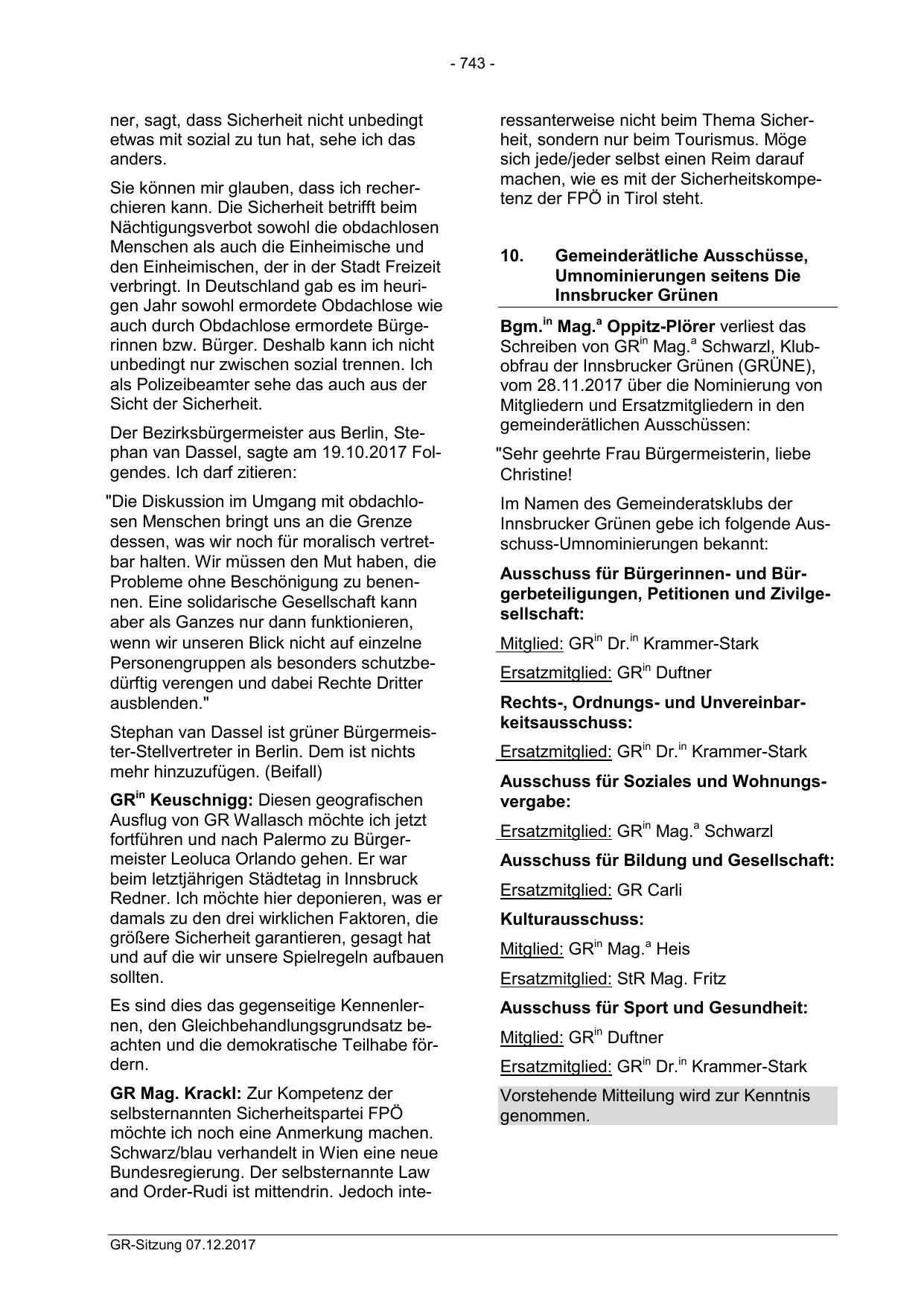 Innsbrucker Grünen gebe ich folgende Ausschuss-Umnominierungen bekannt: