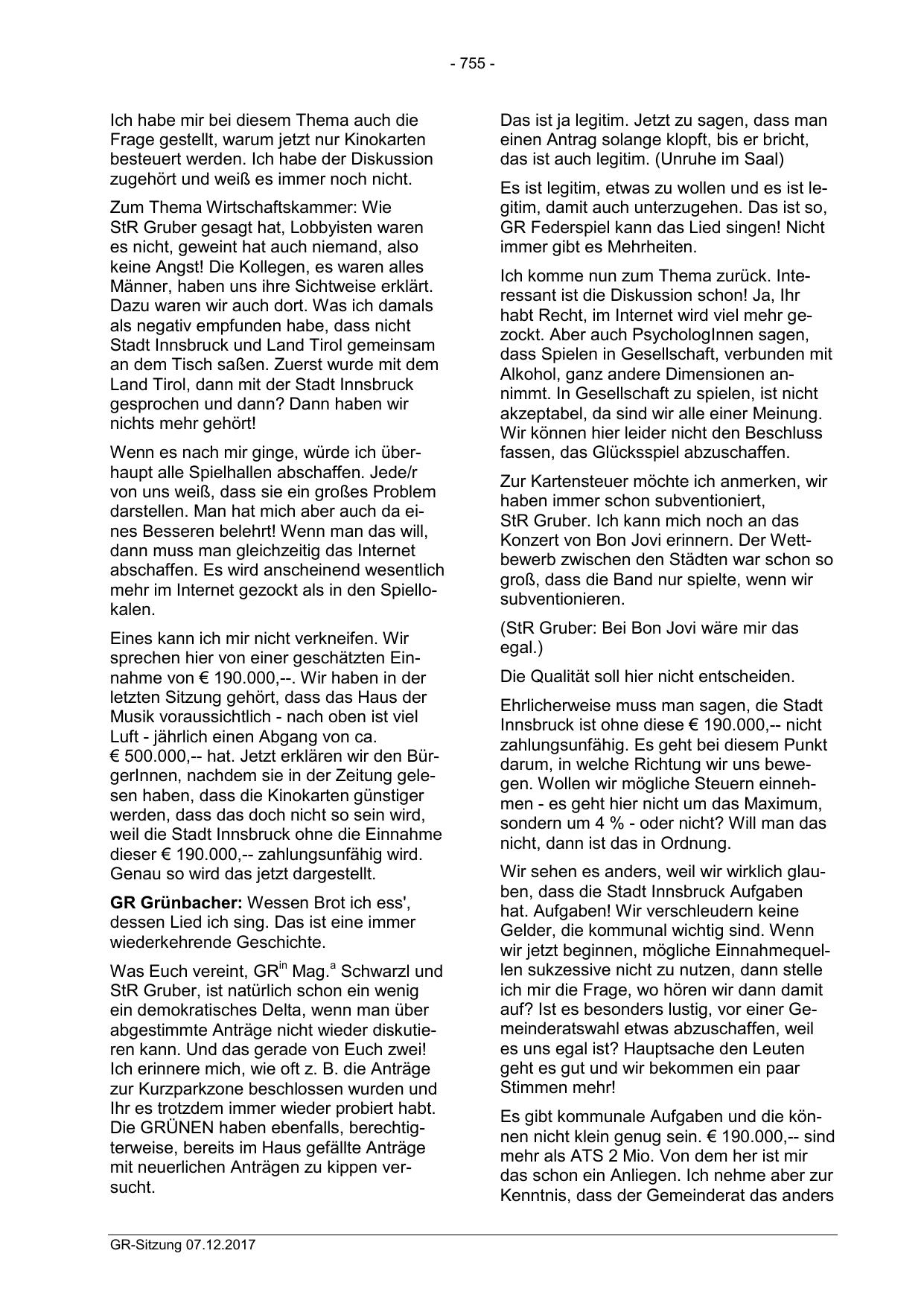 Wir sehen es anders, weil wir wirklich glauben, dass die Stadt Innsbruck Aufgaben