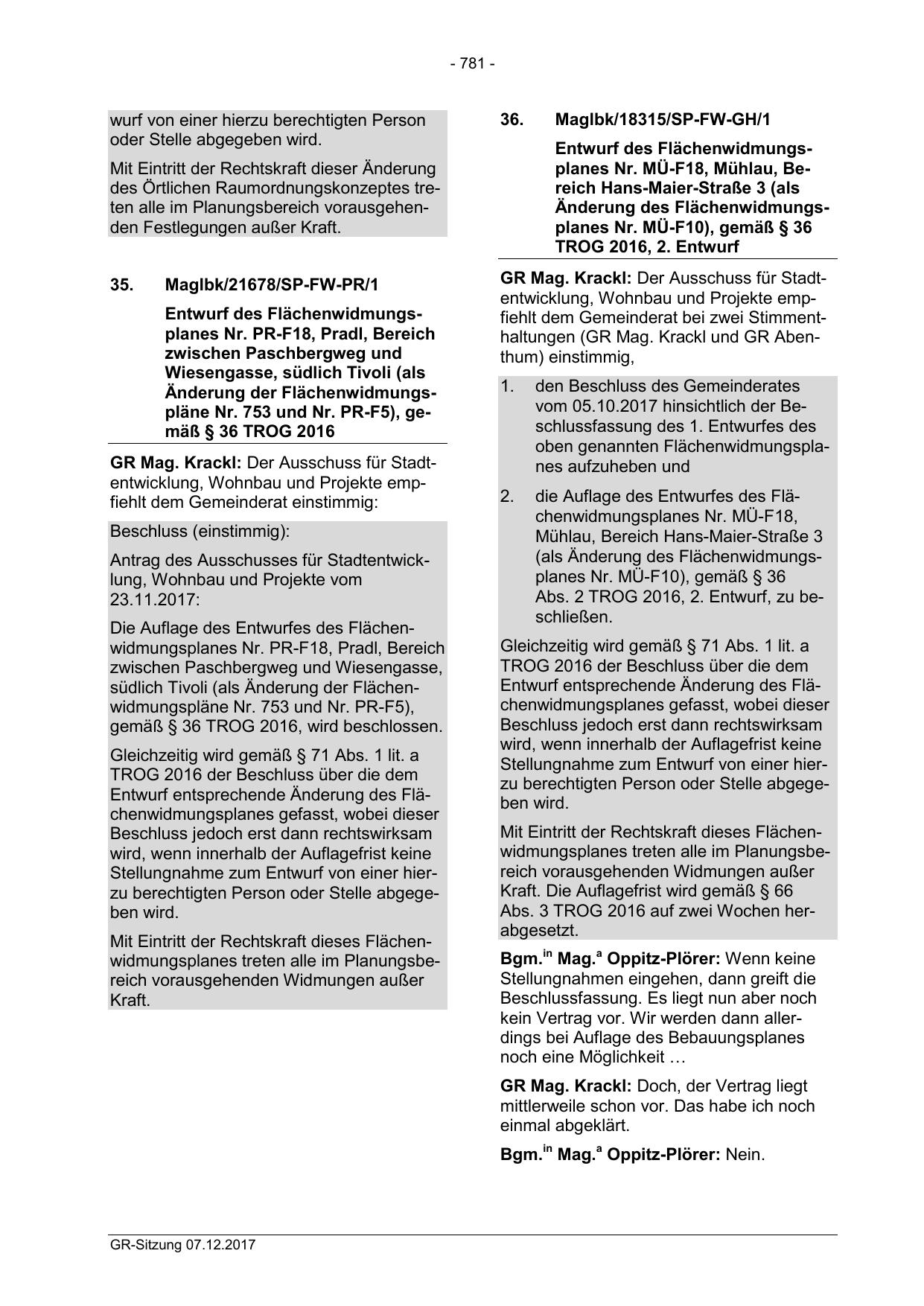 Änderung der Flächenwidmungspläne Nr. 753 und Nr. PR-F5), gemäß § 36 TROG 2016