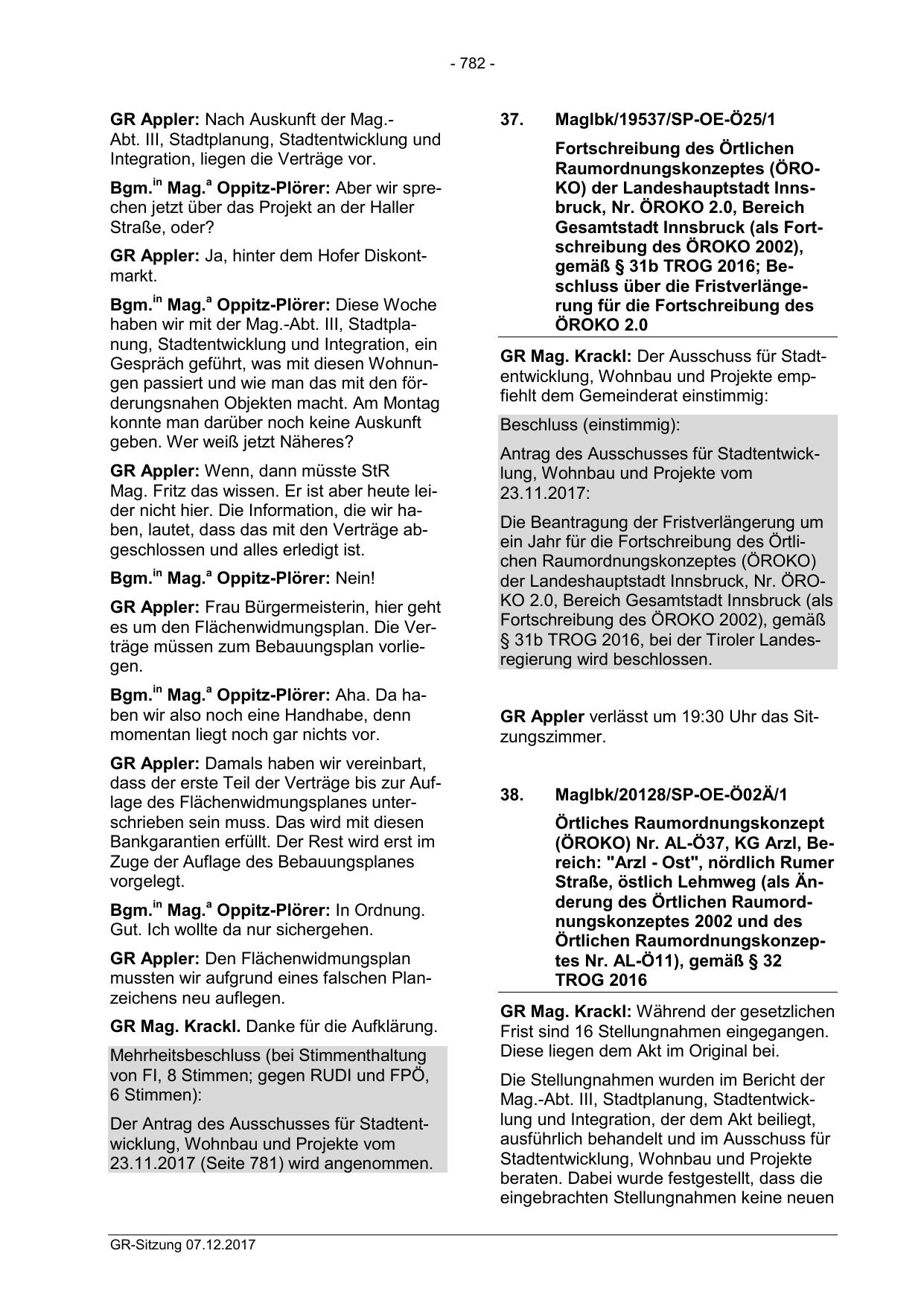 Bgm.in Mag.a Oppitz-Plörer: Aha. Da haben wir also noch eine Handhabe, denn