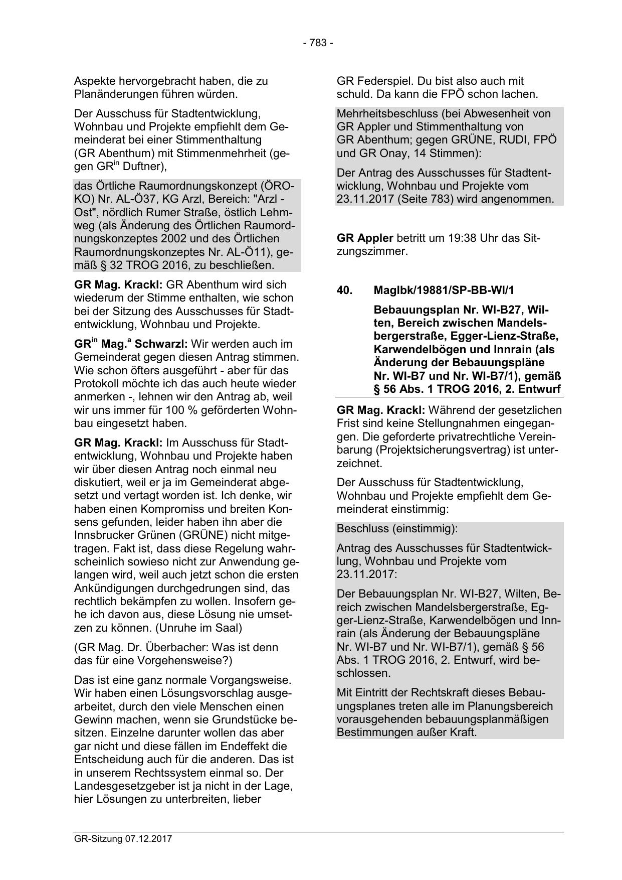GR Mag. Krackl: Im Ausschuss für Stadtentwicklung, Wohnbau und Projekte haben