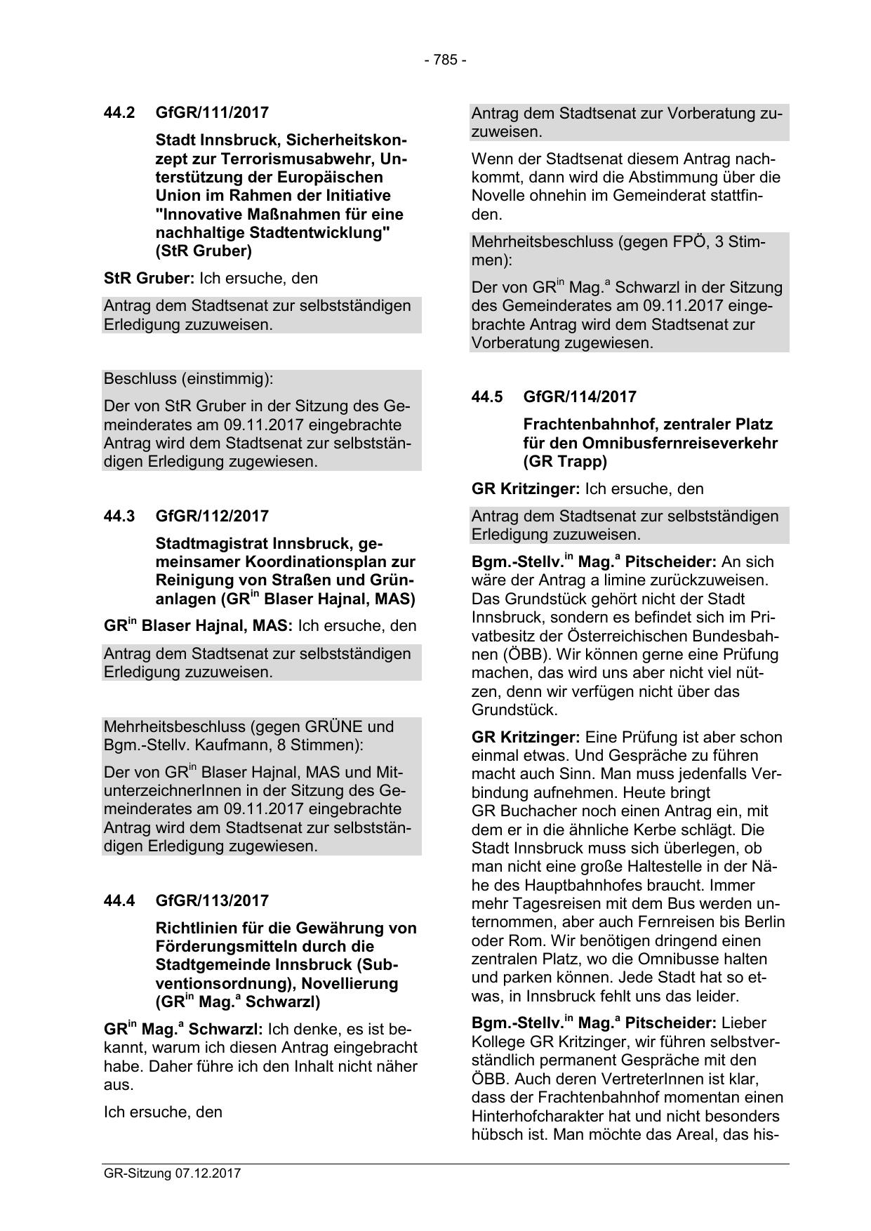 Der von StR Gruber in der Sitzung des Gemeinderates am 09.11.2017 eingebrachte