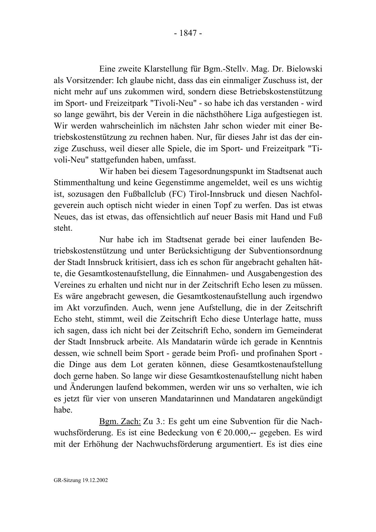 Bgm. Zach: Zu 3.: Es geht um eine Subvention für die Nachwuchsförderung. Es ist eine Bedeckung von € 20.000,-- gegeben. Es wird