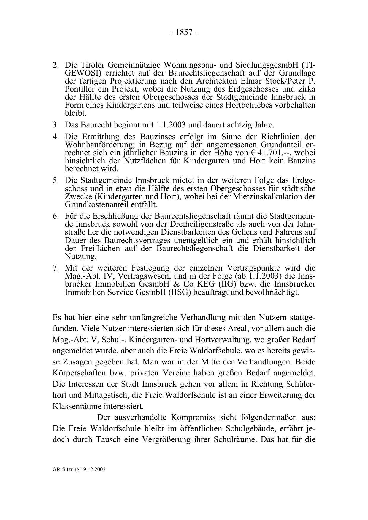 Mag.-Abt. IV, Vertragswesen, und in der Folge (ab 1.1.2003) die Innsbrucker Immobilien GesmbH & Co KEG (IIG) bzw. die Innsbrucker