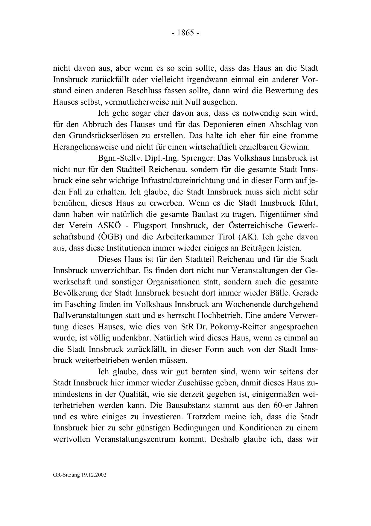 Bgm.-Stellv. Dipl.-Ing. Sprenger: Das Volkshaus Innsbruck ist