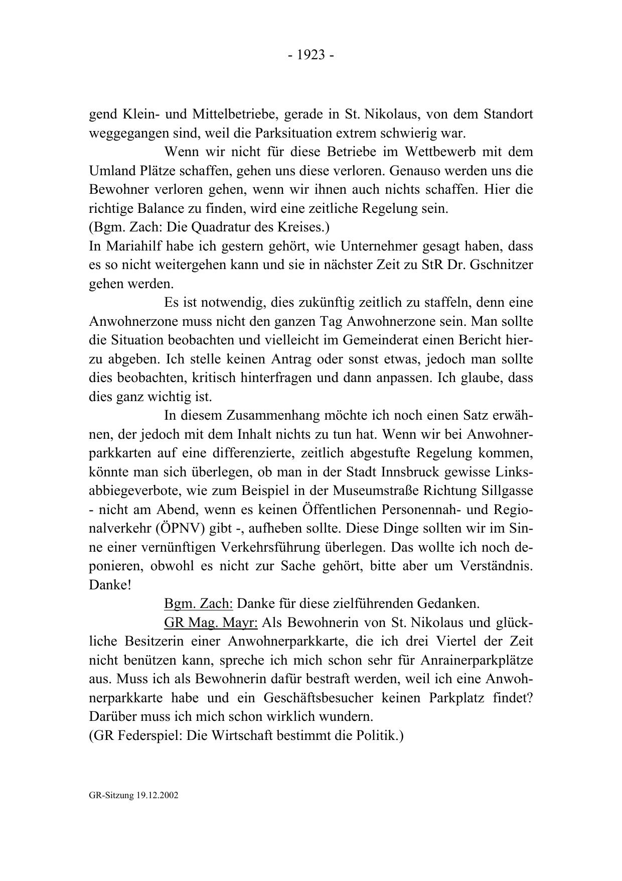 GR Mag. Mayr: Als Bewohnerin von St. Nikolaus und glückliche Besitzerin einer Anwohnerparkkarte, die ich drei Viertel der Zeit