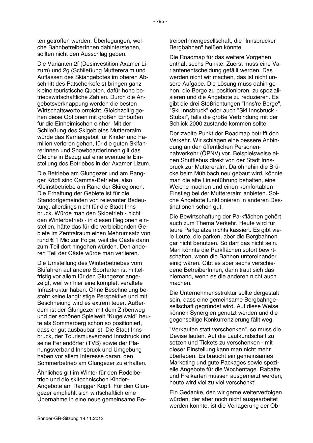 Gleiche in Bezug auf eine eventuelle Einstellung des Betriebes in der Axamer Lizum.