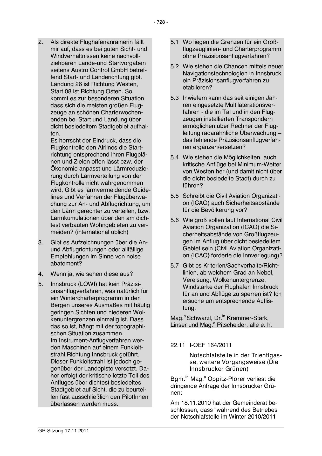 Am 18.11.2010 hat der Gemeinderat beschlossen, dass "während des Betriebes