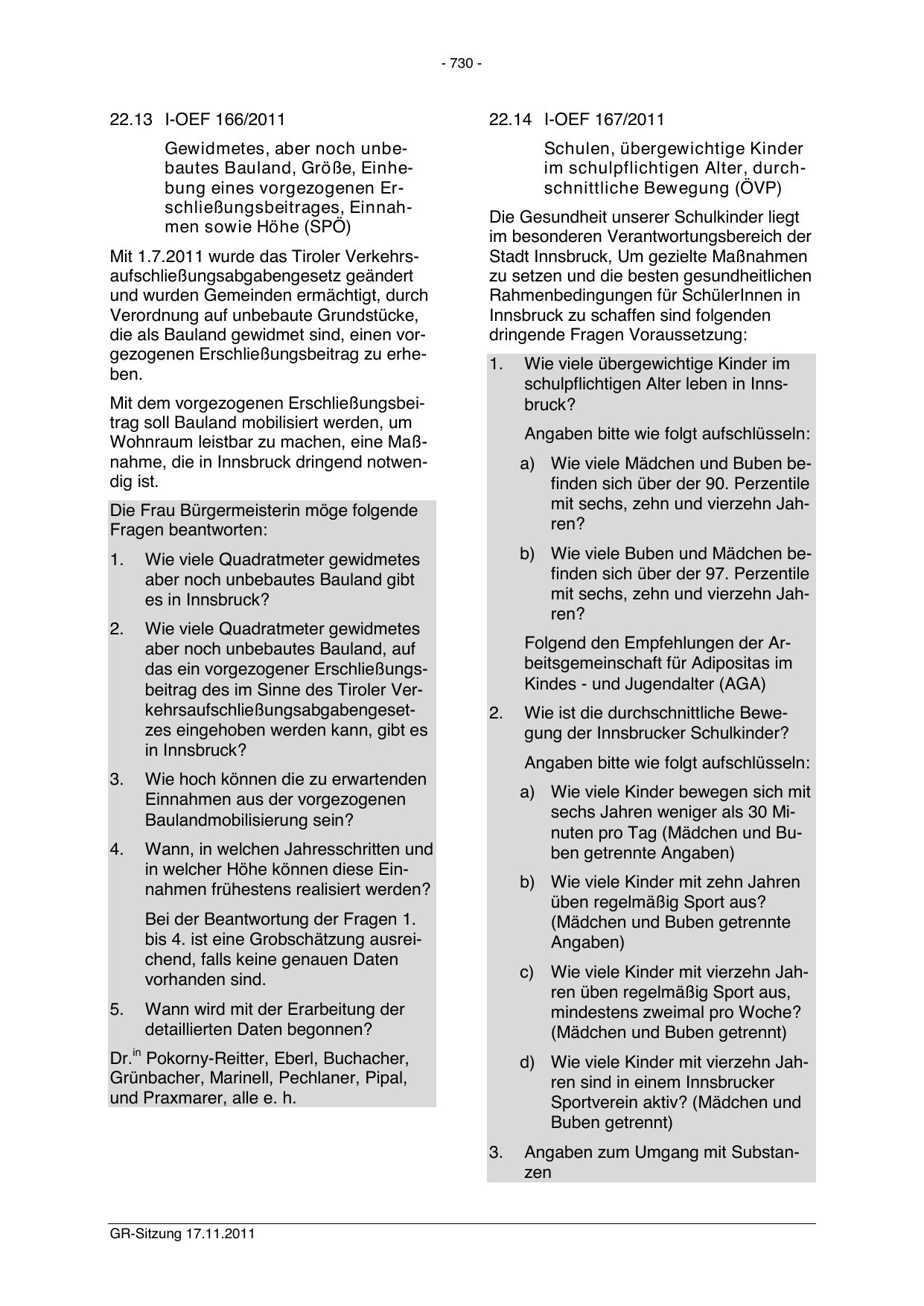 Stadt Innsbruck, Um gezielte Maßnahmen
