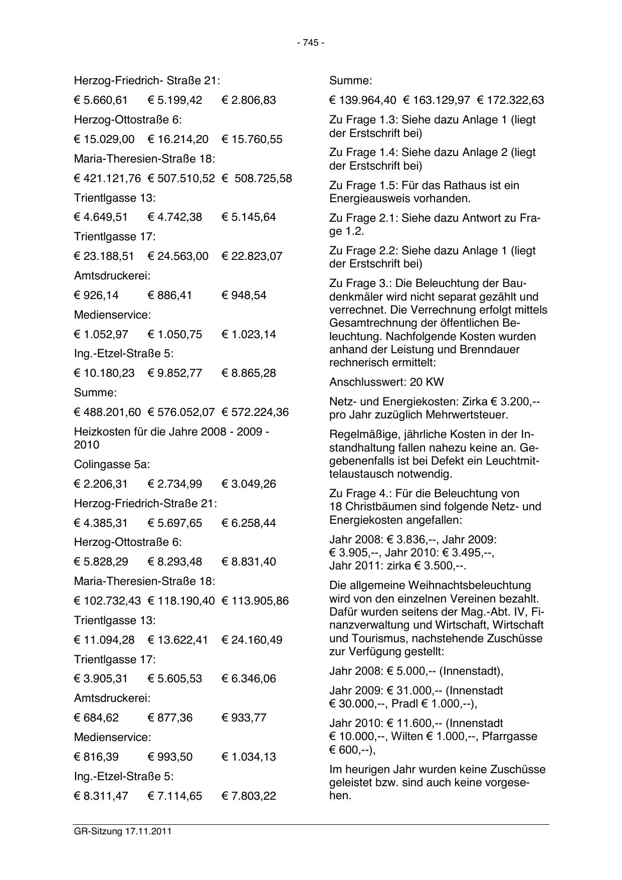 € 10.000,--, Wilten € 1.000,--, Pfarrgasse