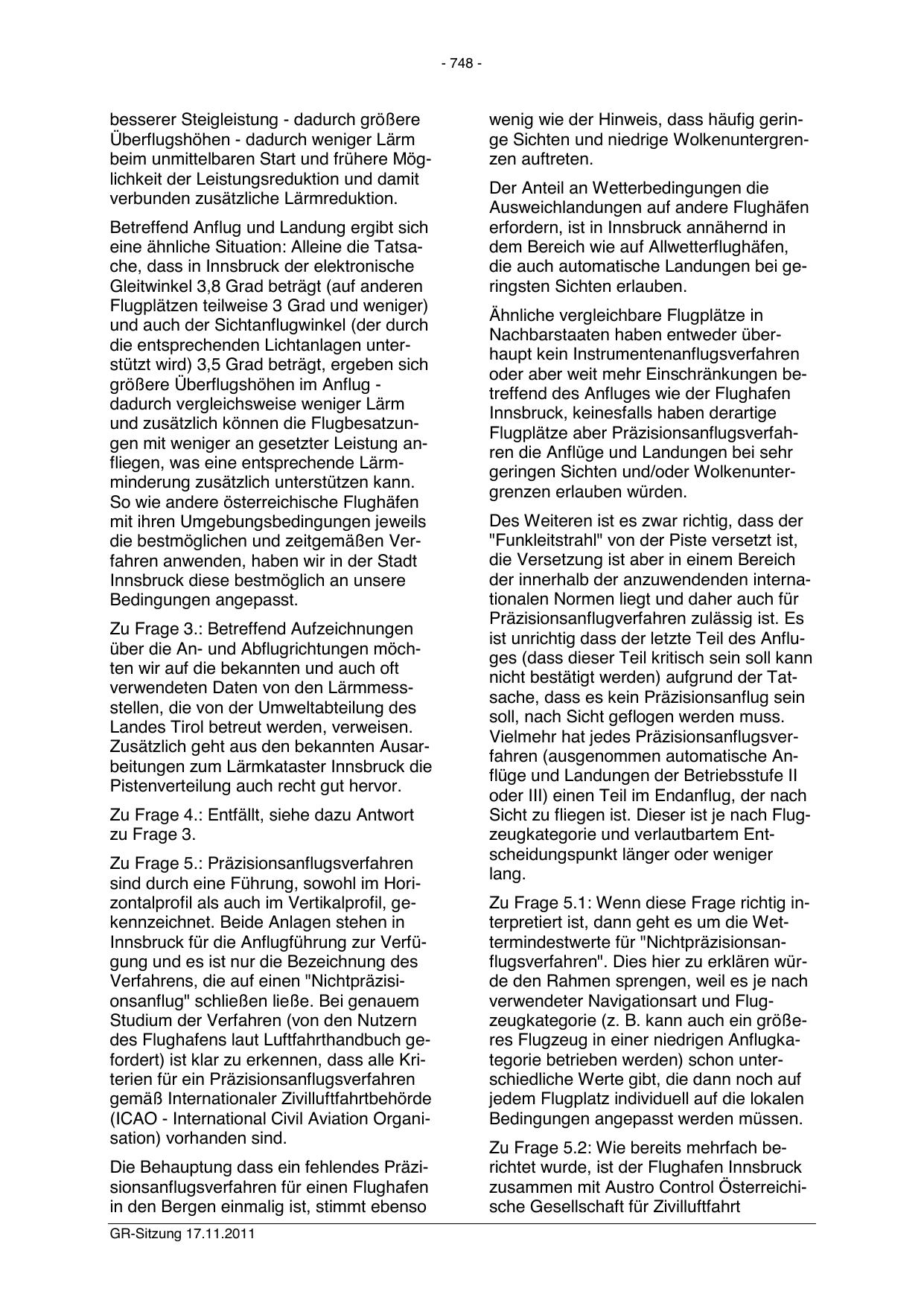 Zu Frage 5.2: Wie bereits mehrfach berichtet wurde, ist der Flughafen Innsbruck