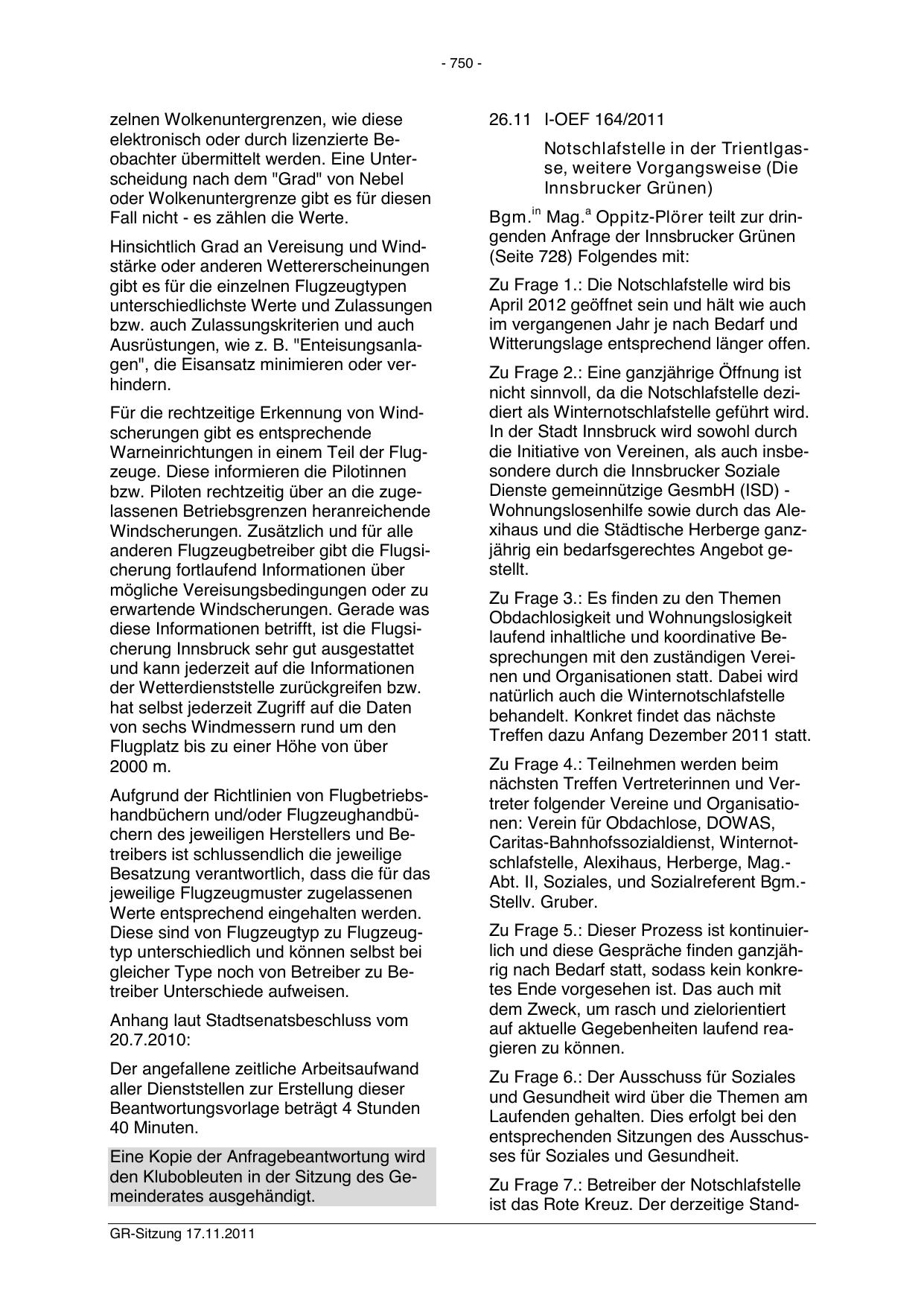 Bgm.in Mag.a Oppitz-Plörer teilt zur dringenden Anfrage der Innsbrucker Grünen