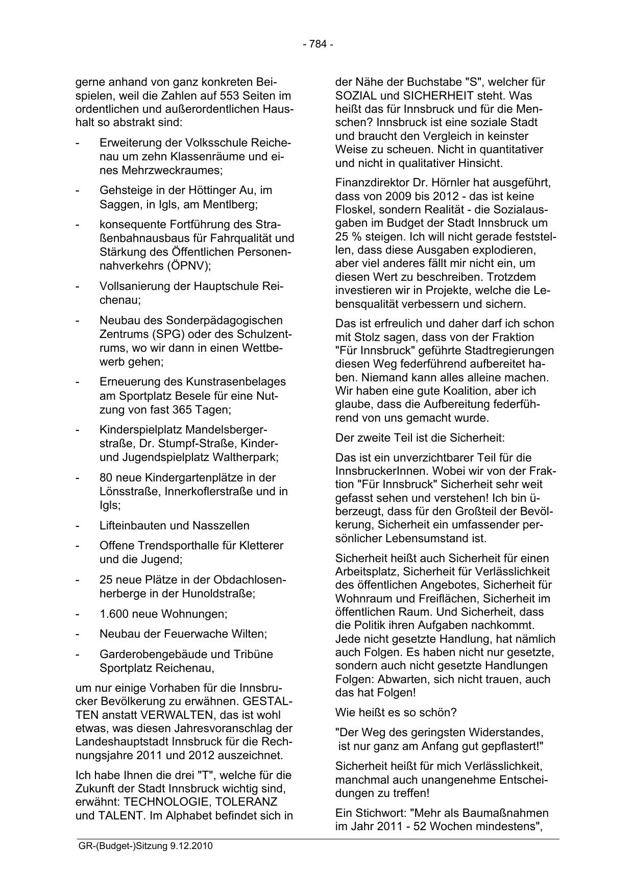 InnsbruckerInnen. Wobei wir von der Fraktion "Für Innsbruck" Sicherheit sehr weit