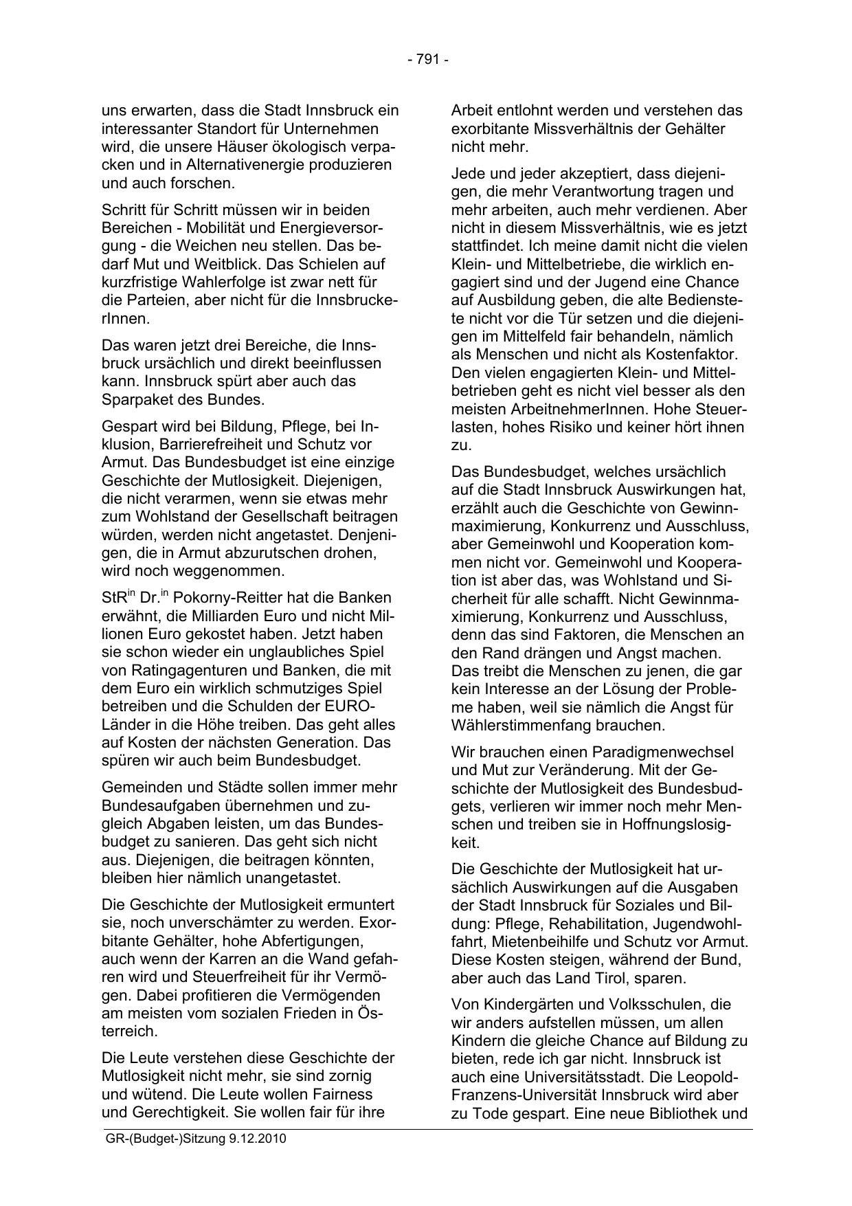 die Parteien, aber nicht für die InnsbruckerInnen.