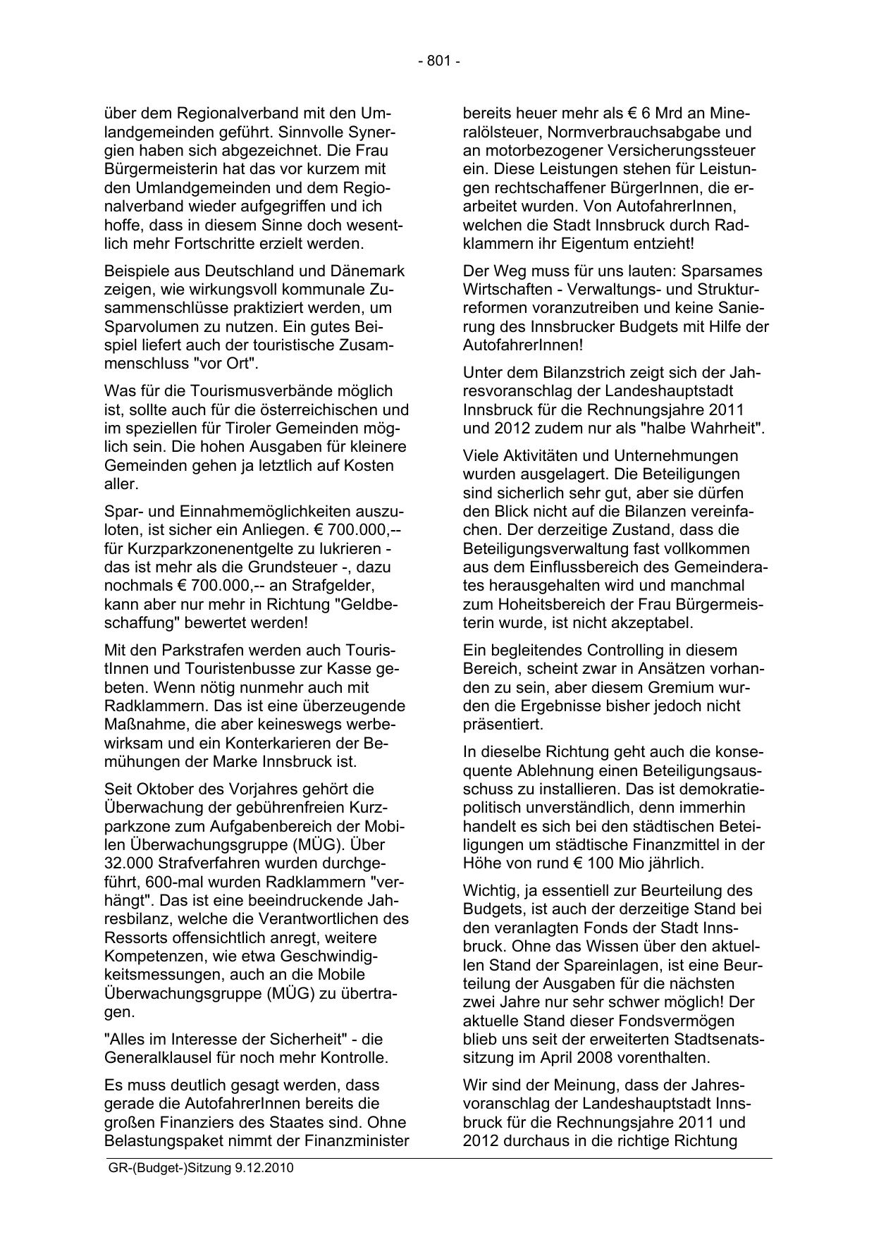 Wir sind der Meinung, dass der Jahresvoranschlag der Landeshauptstadt Innsbruck für die Rechnungsjahre 2011 und