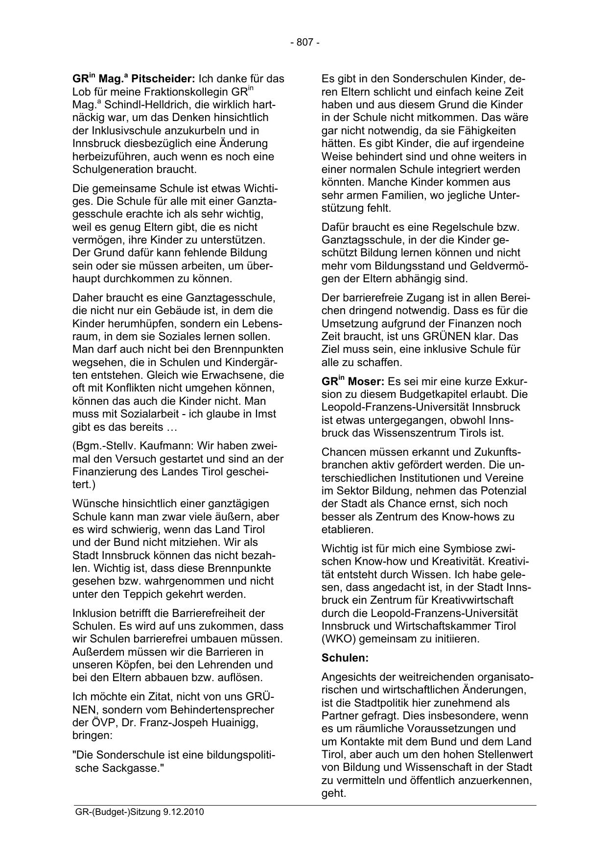 Stadt Innsbruck können das nicht bezahlen. Wichtig ist, dass diese Brennpunkte
