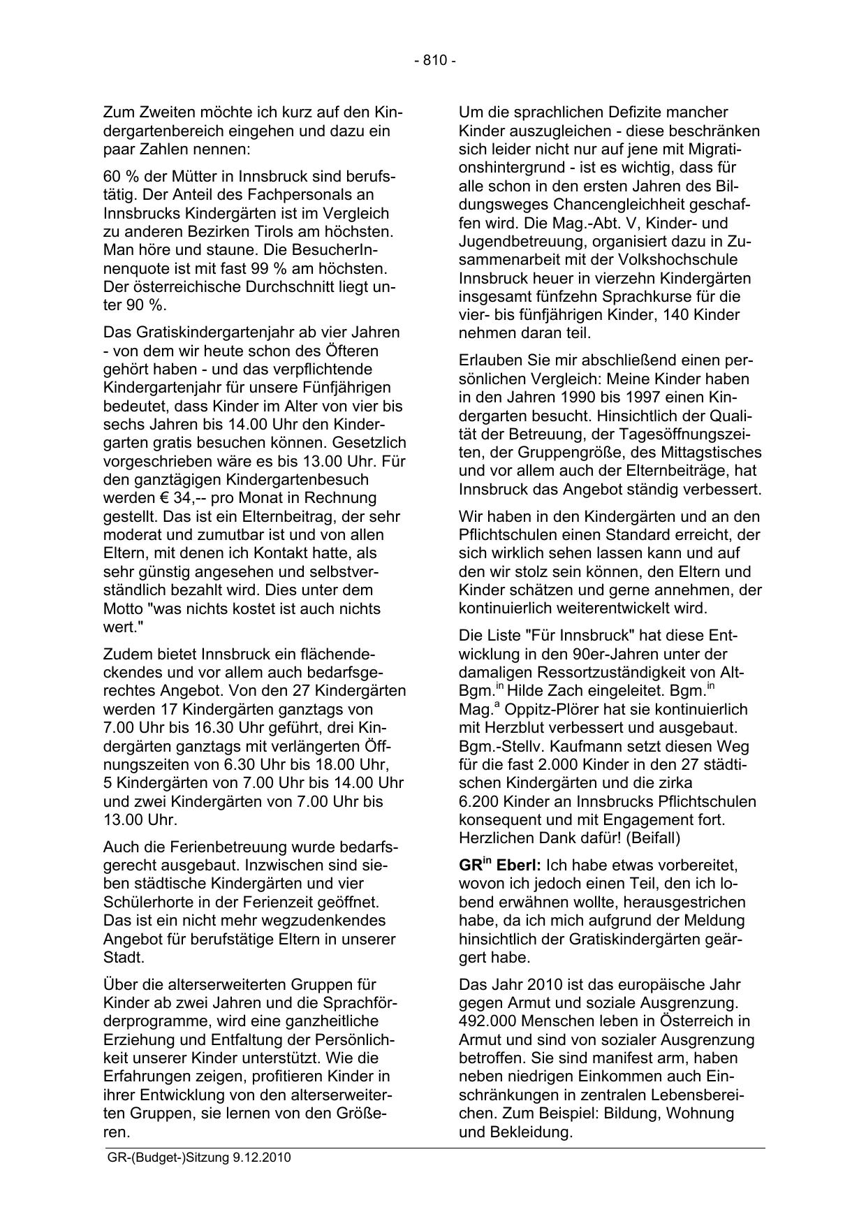 damaligen Ressortzuständigkeit von AltBgm.in Hilde Zach eingeleitet. Bgm.in