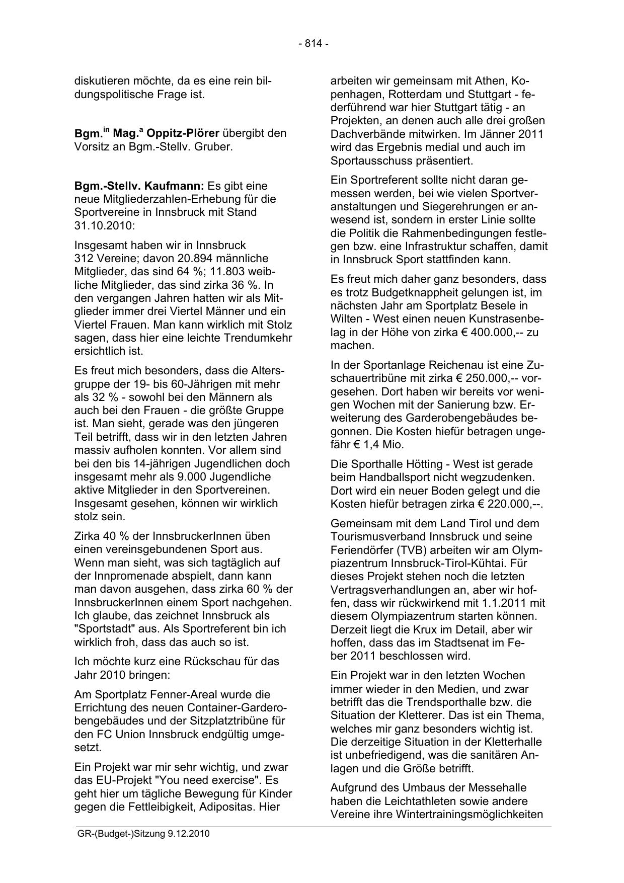 hoffen, dass das im Stadtsenat im Feber 2011 beschlossen wird.