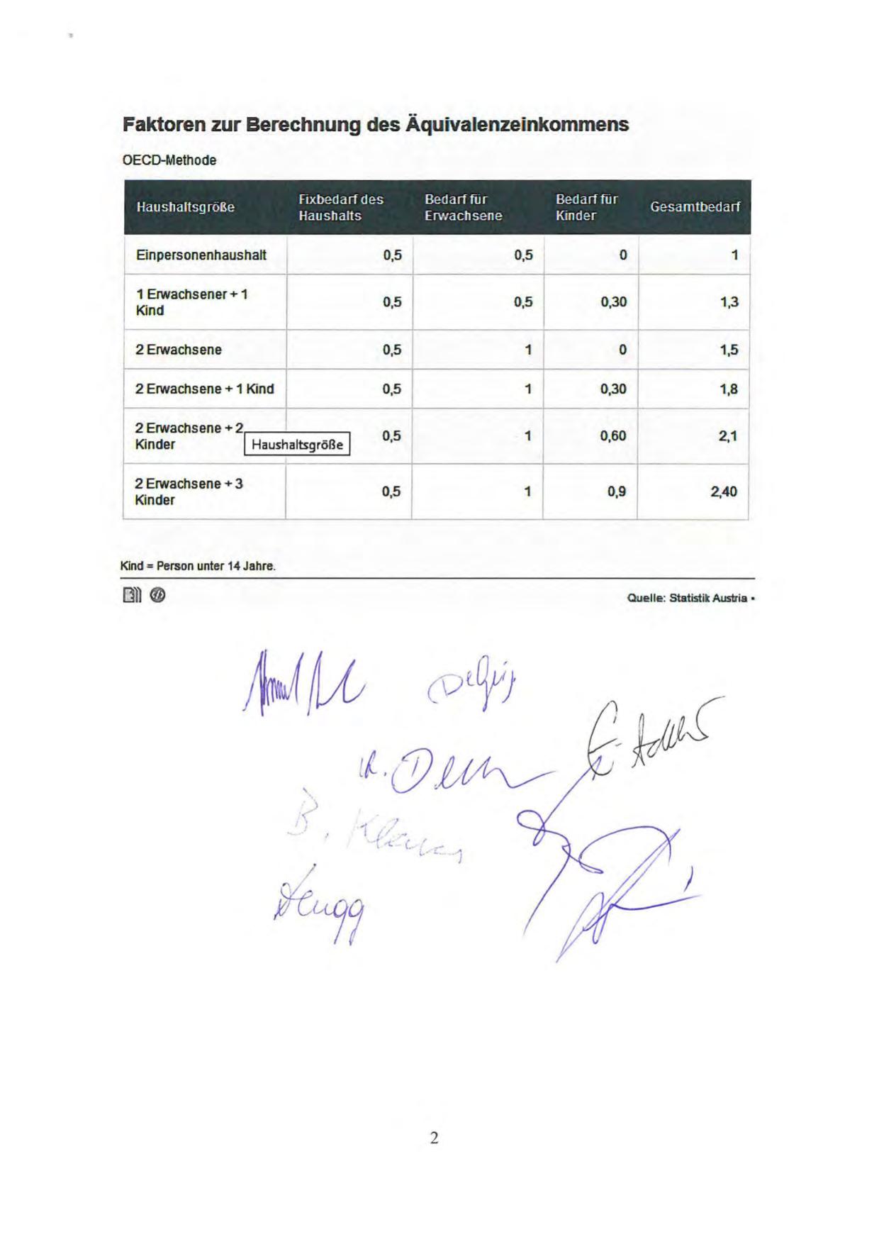 Faktoren zur Berechnung des Äquivalenzeinkommens