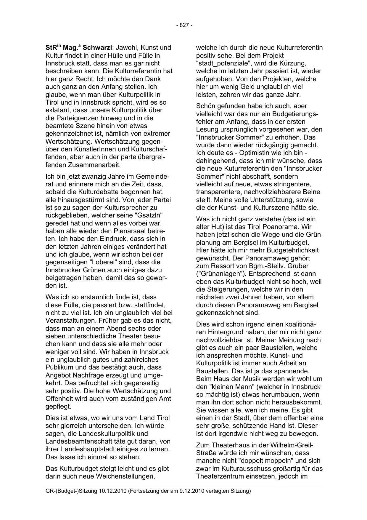 haben jetzt schon die Wege und die Grünplanung am Bergisel im Kulturbudget.
