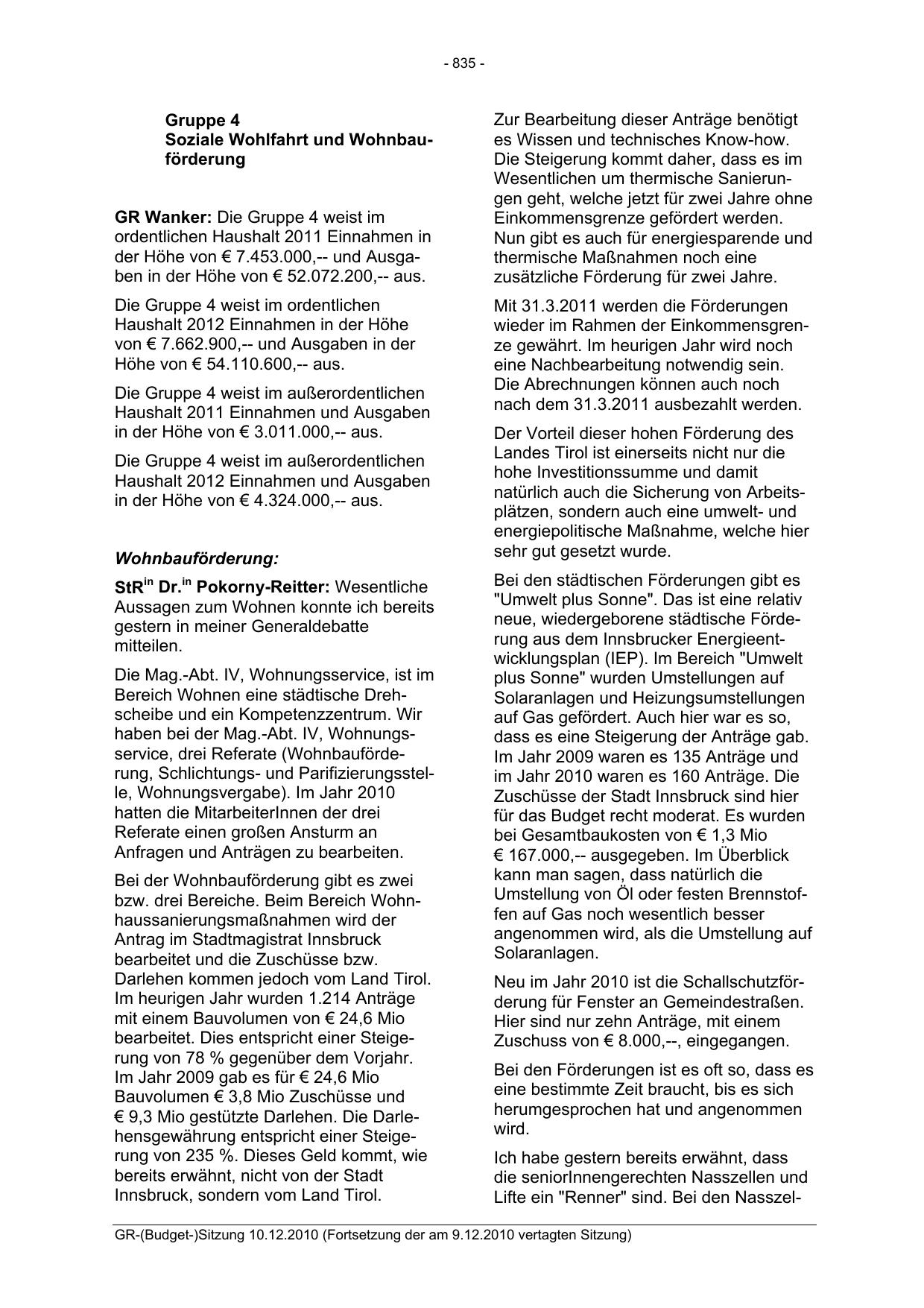 GR-(Budget-)Sitzung 10.12.2010 (Fortsetzung der am 9.12.2010 vertagten Sitzung)