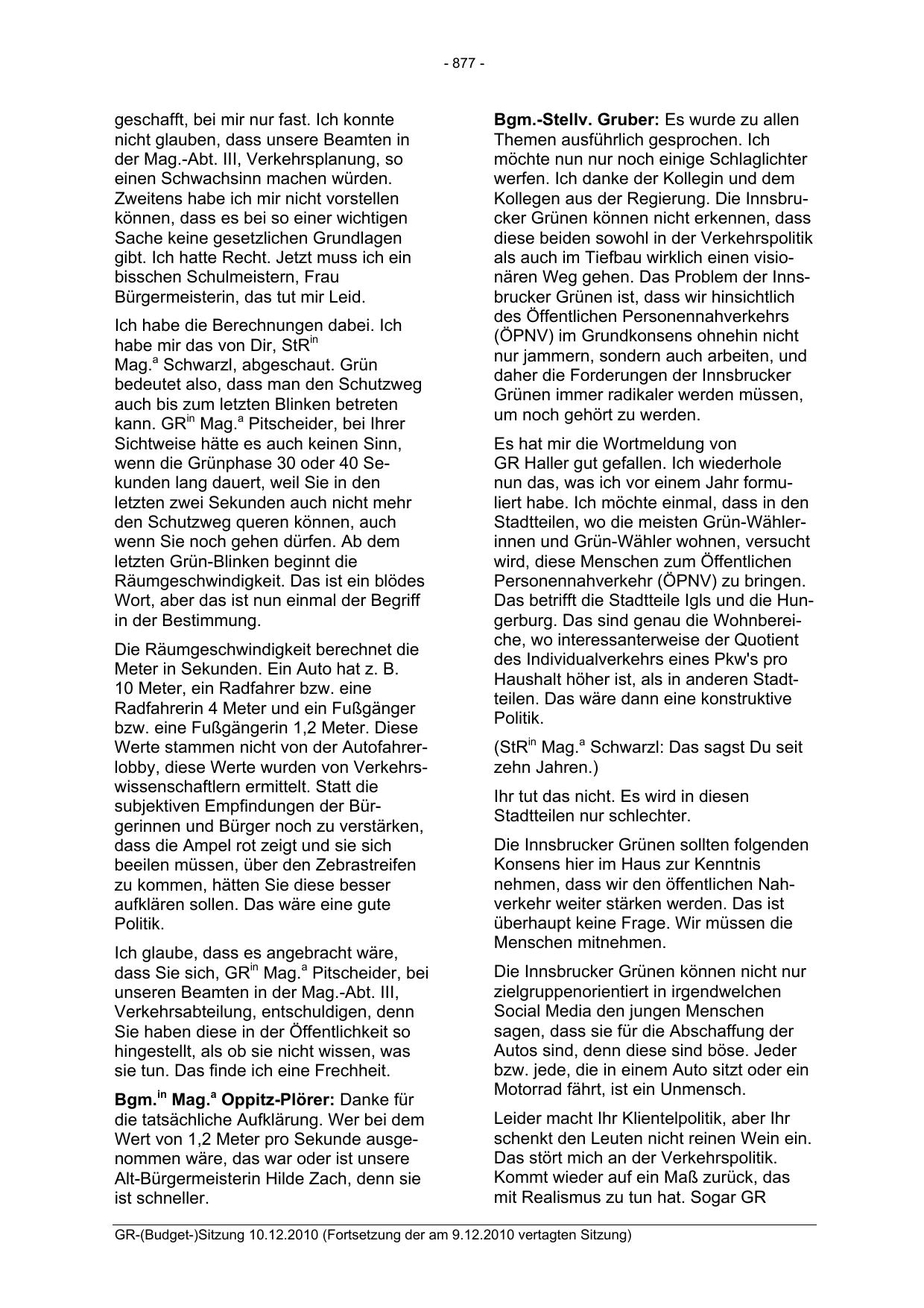 als auch im Tiefbau wirklich einen visionären Weg gehen. Das Problem der Innsbrucker Grünen ist, dass wir hinsichtlich