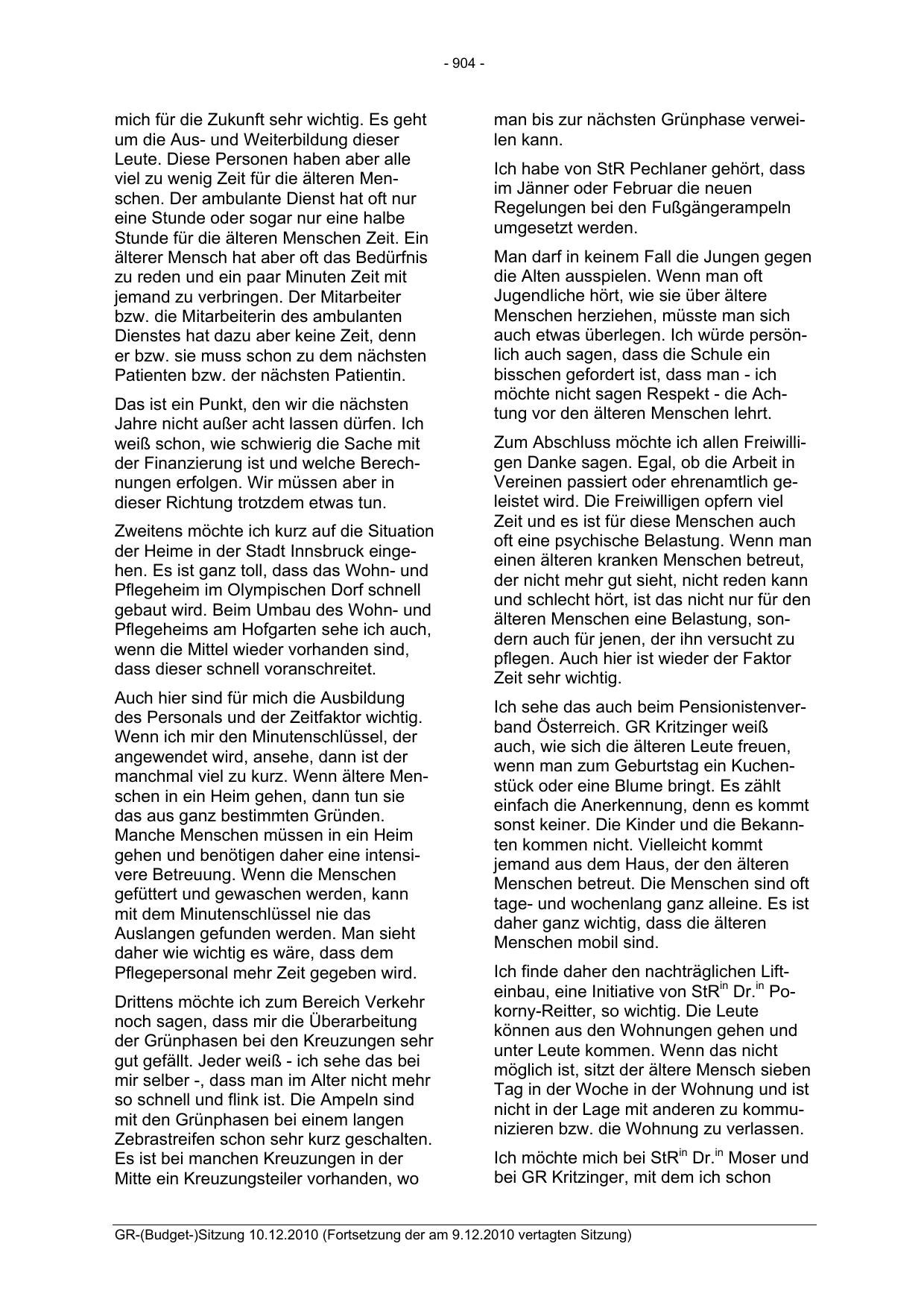 GR-(Budget-)Sitzung 10.12.2010 (Fortsetzung der am 9.12.2010 vertagten Sitzung)