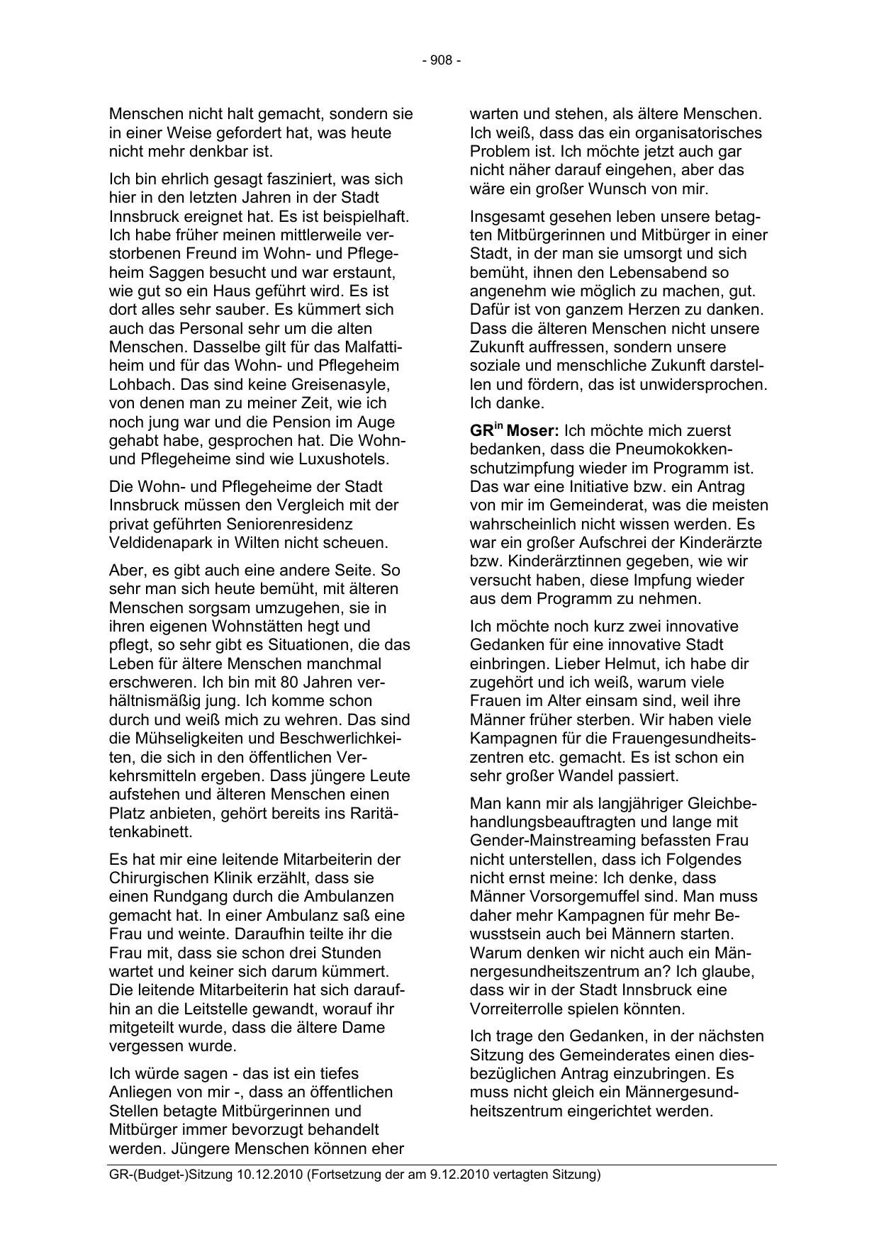 GR-(Budget-)Sitzung 10.12.2010 (Fortsetzung der am 9.12.2010 vertagten Sitzung)