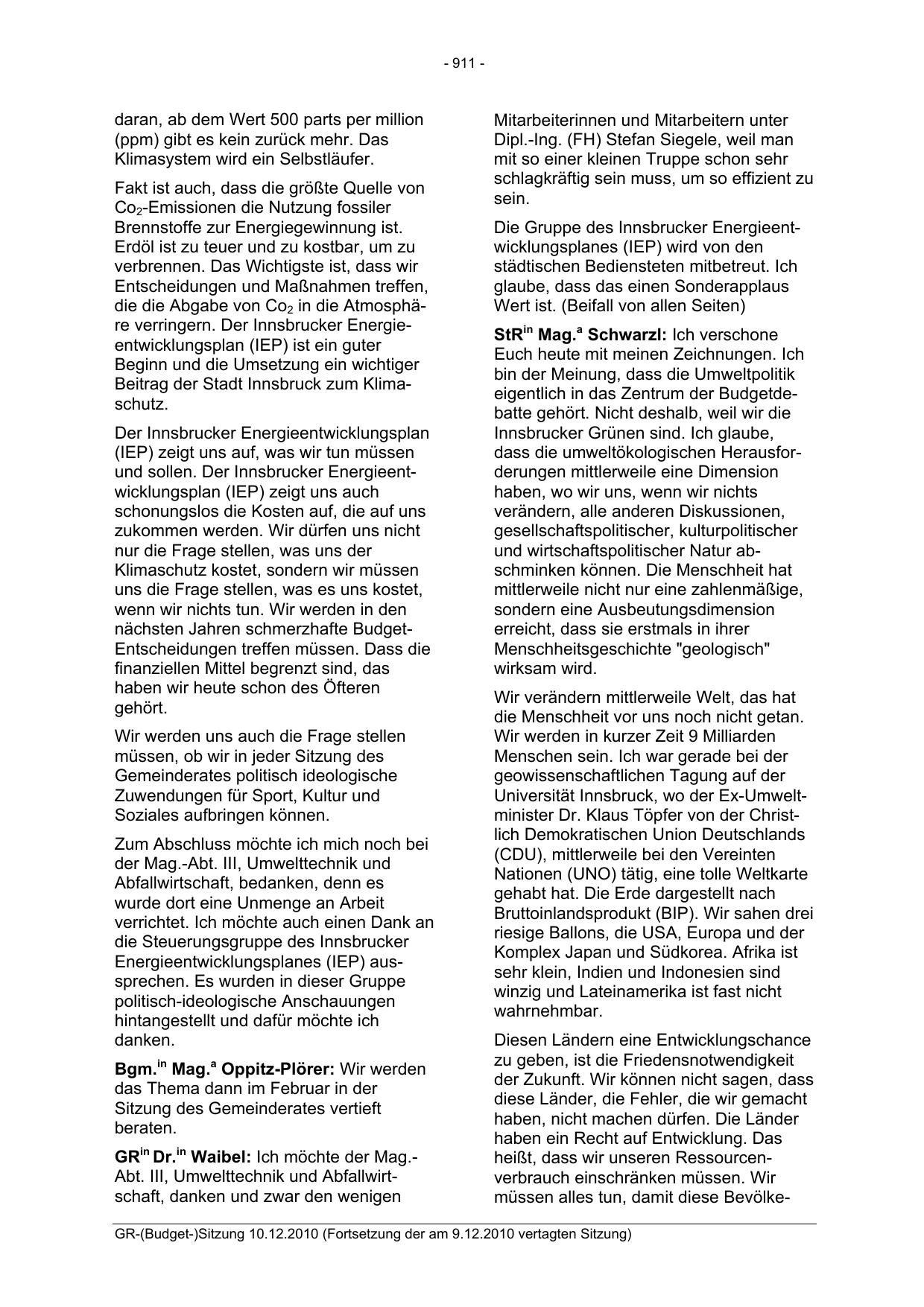GR-(Budget-)Sitzung 10.12.2010 (Fortsetzung der am 9.12.2010 vertagten Sitzung)