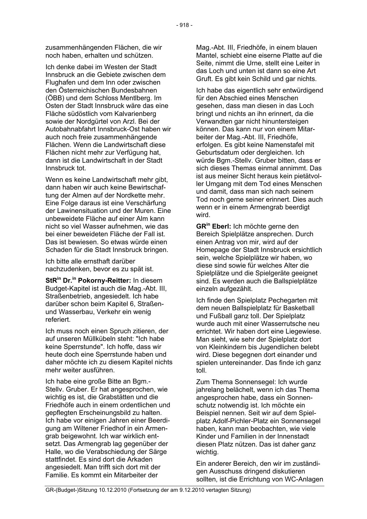 GR-(Budget-)Sitzung 10.12.2010 (Fortsetzung der am 9.12.2010 vertagten Sitzung)
