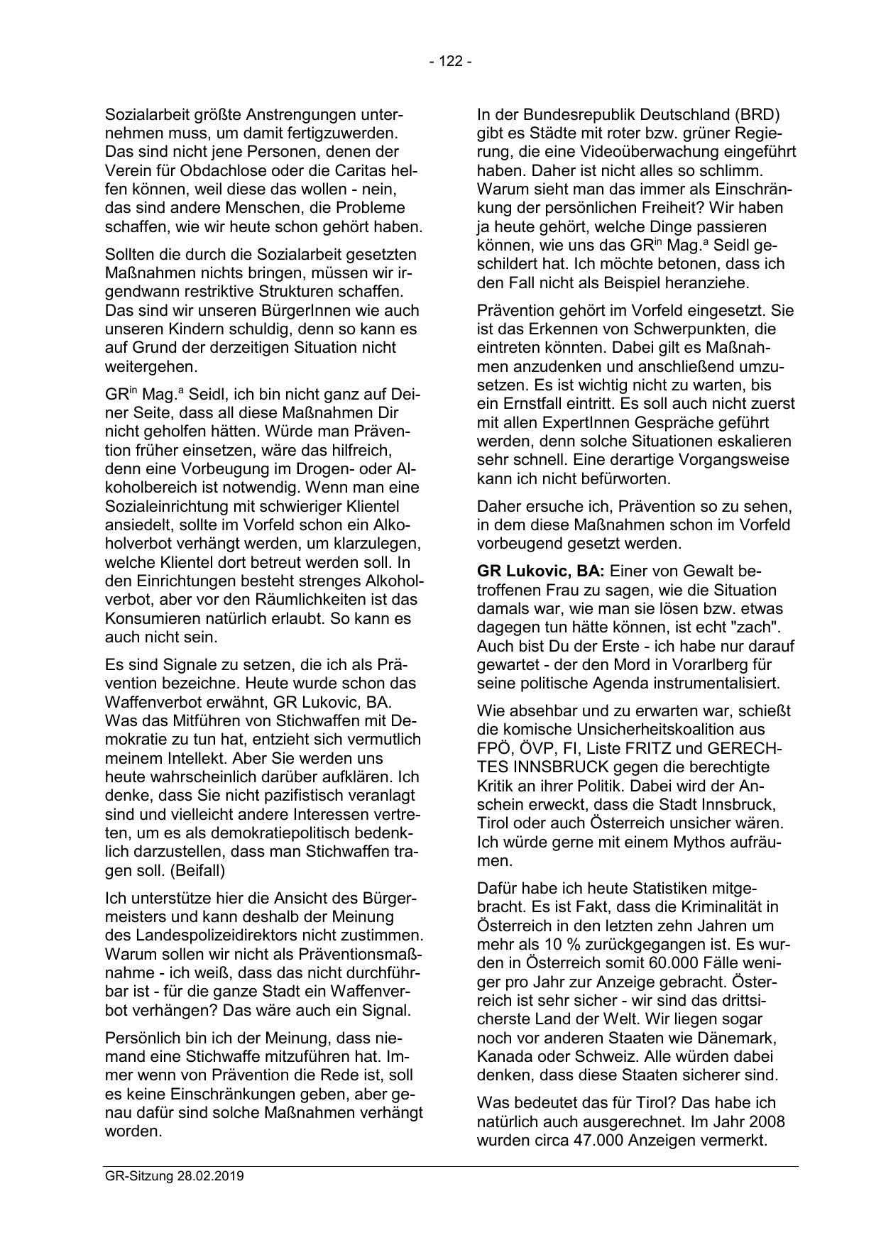 Waffenverbot erwähnt, GR Lukovic, BA.