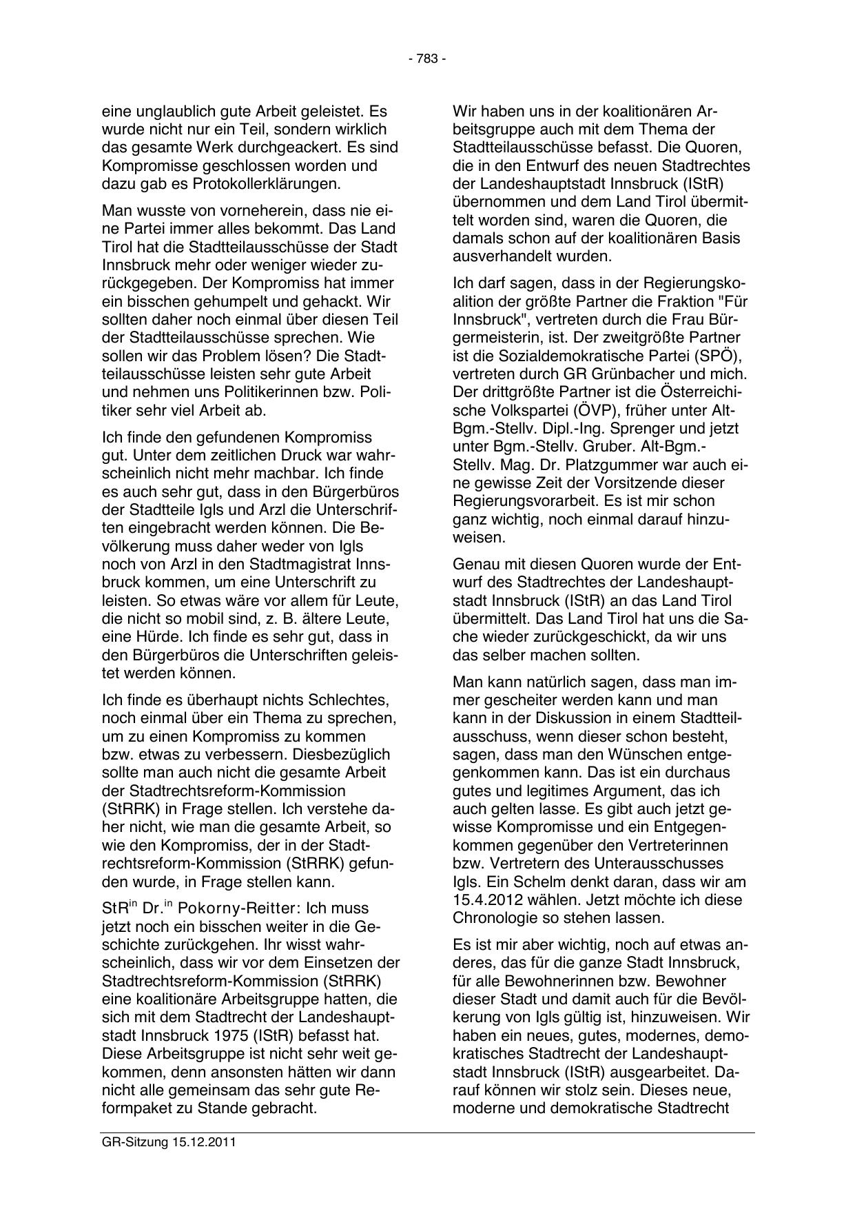haben ein neues, gutes, modernes, demokratisches Stadtrecht der Landeshauptstadt Innsbruck (IStR) ausgearbeitet. Darauf können wir stolz sein. Dieses neue,