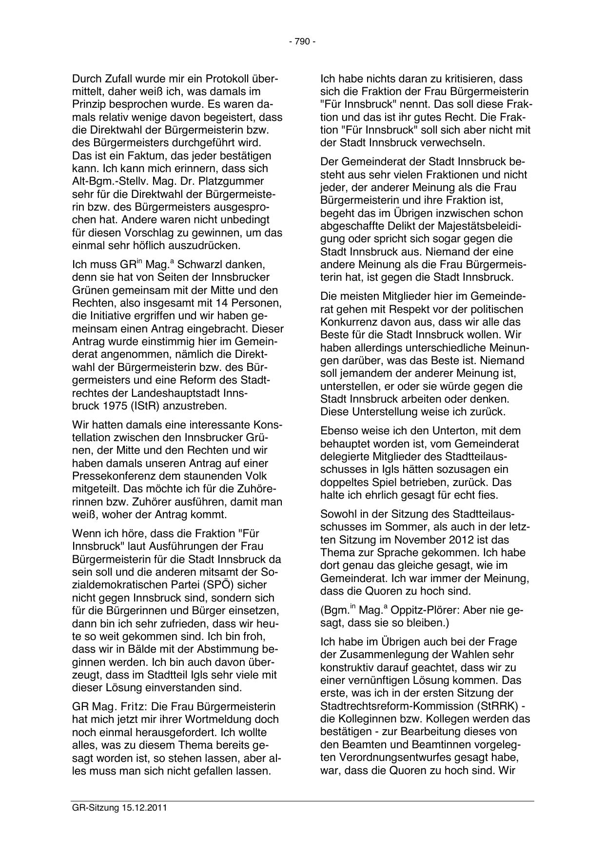 "Für Innsbruck" nennt. Das soll diese Fraktion und das ist ihr gutes Recht. Die Fraktion "Für Innsbruck" soll sich aber nicht mit