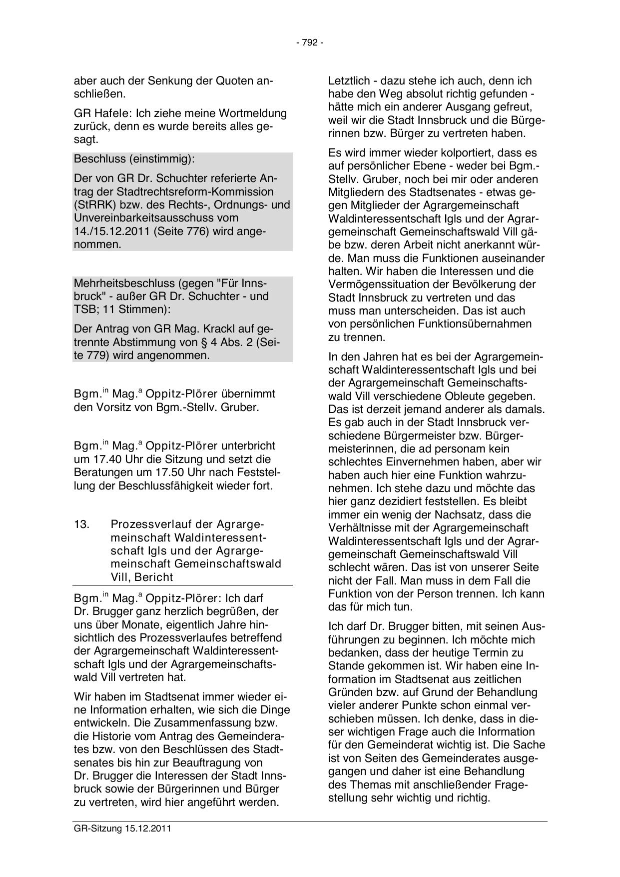 Dr. Brugger die Interessen der Stadt Innsbruck sowie der Bürgerinnen und Bürger