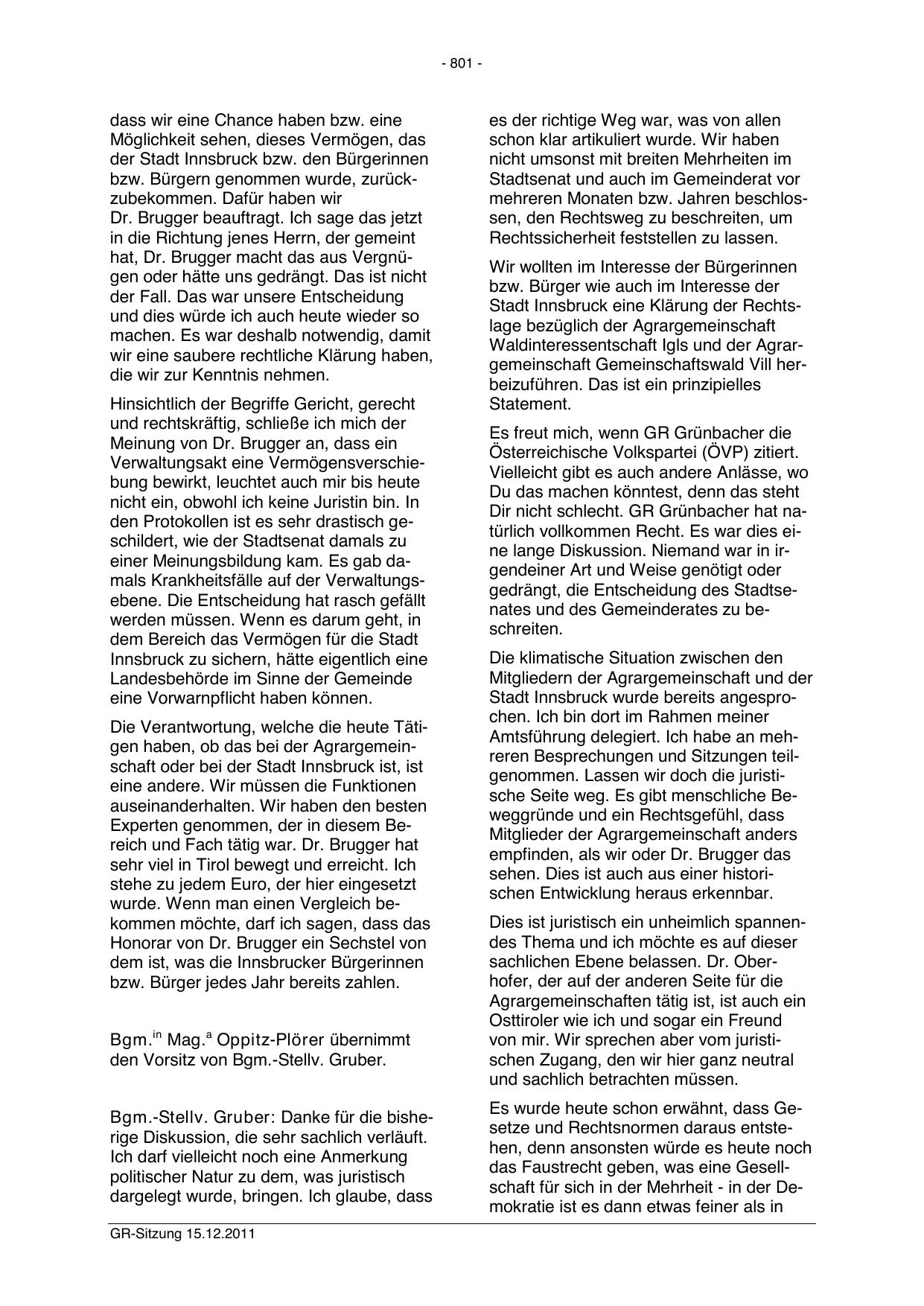 Die Verantwortung, welche die heute Tätigen haben, ob das bei der Agrargemeinschaft oder bei der Stadt Innsbruck ist, ist