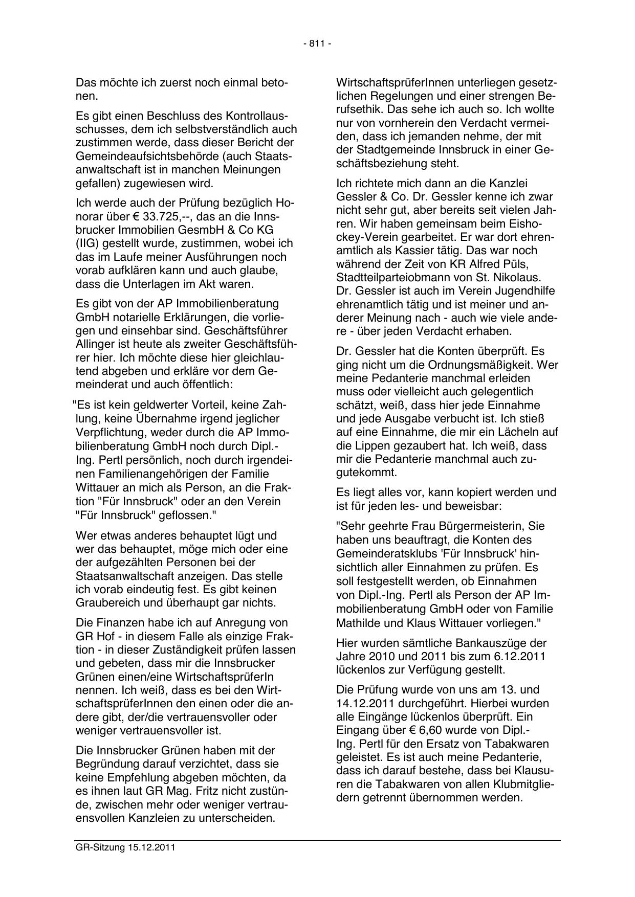 Wittauer an mich als Person, an die Fraktion "Für Innsbruck" oder an den Verein