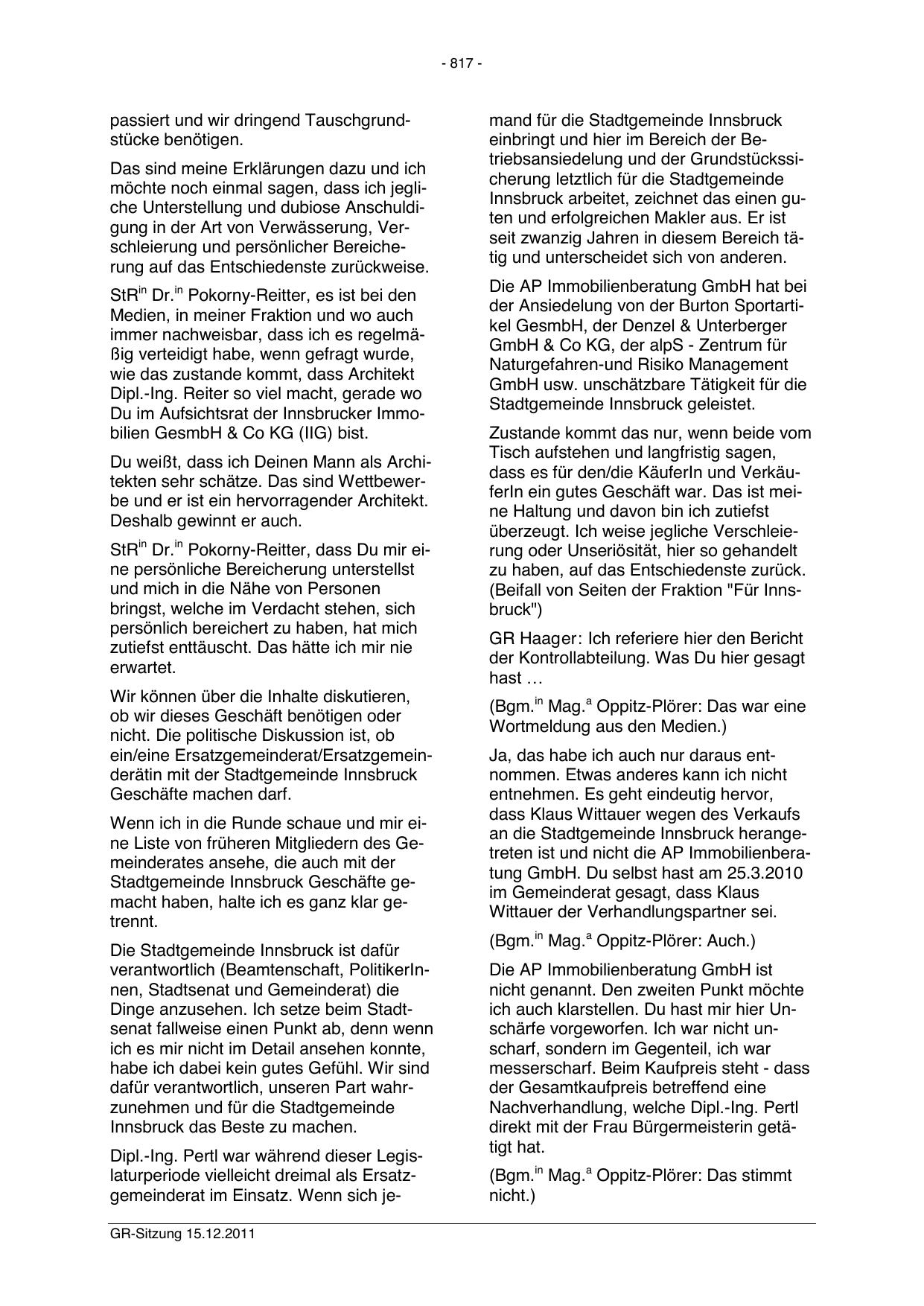 an die Stadtgemeinde Innsbruck herangetreten ist und nicht die AP Immobilienberatung GmbH. Du selbst hast am 25.3.2010