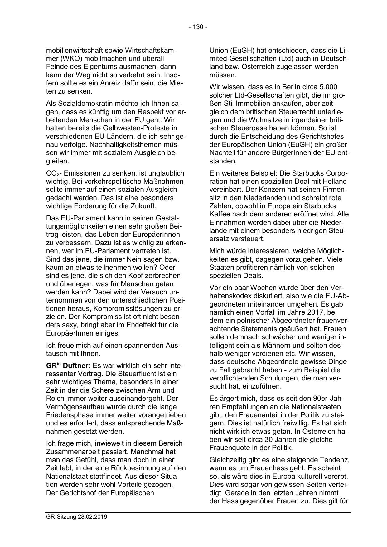 GRin Duftner: Es war wirklich ein sehr interessanter Vortrag. Die Steuerflucht ist ein