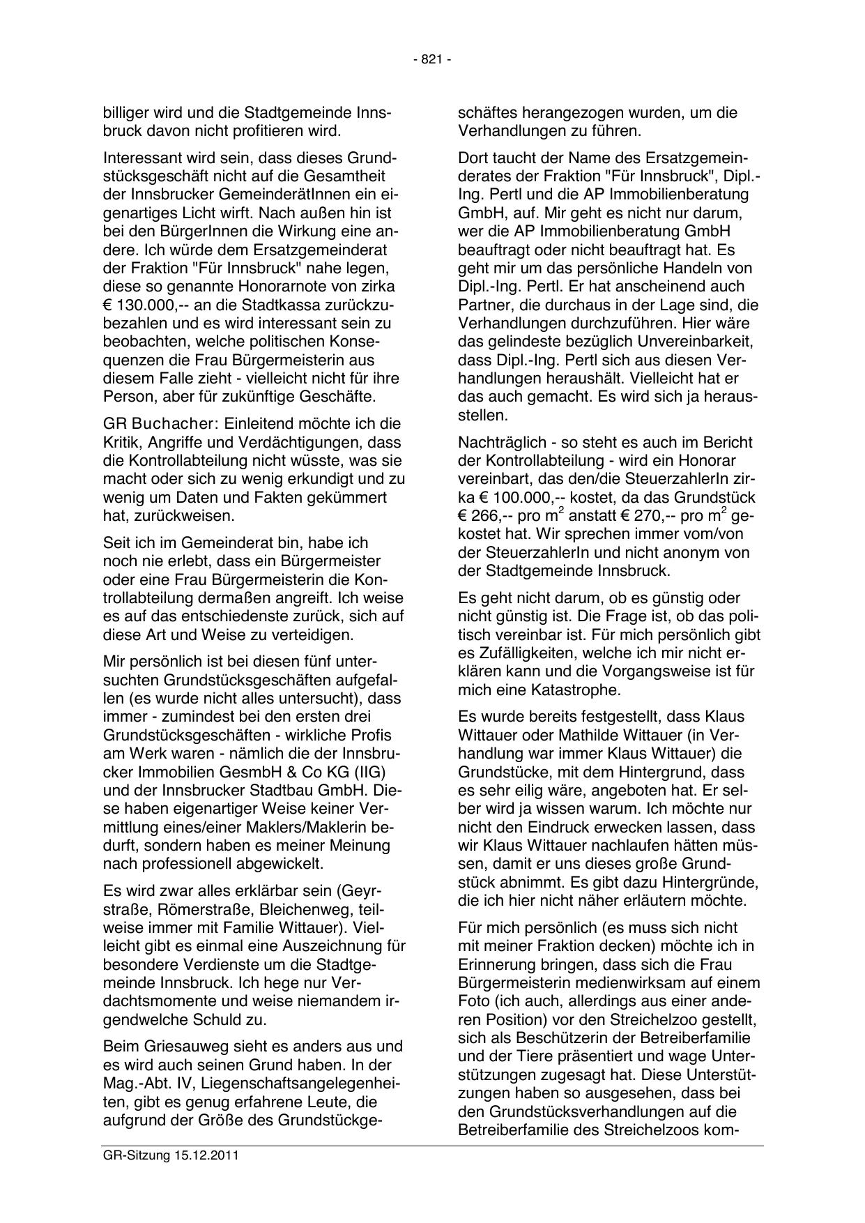 besondere Verdienste um die Stadtgemeinde Innsbruck. Ich hege nur Verdachtsmomente und weise niemandem irgendwelche Schuld zu.