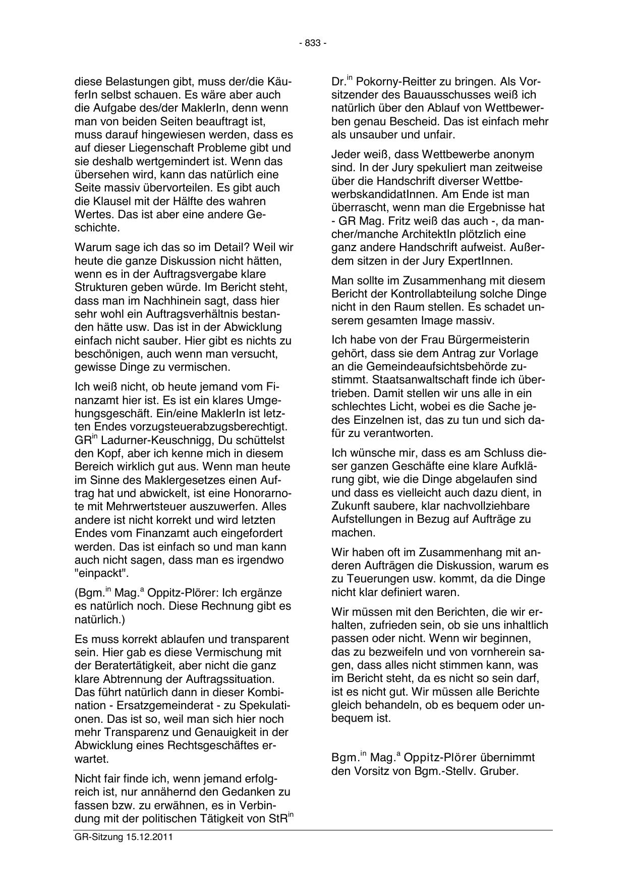 Dr.in Pokorny-Reitter zu bringen. Als Vorsitzender des Bauausschusses weiß ich