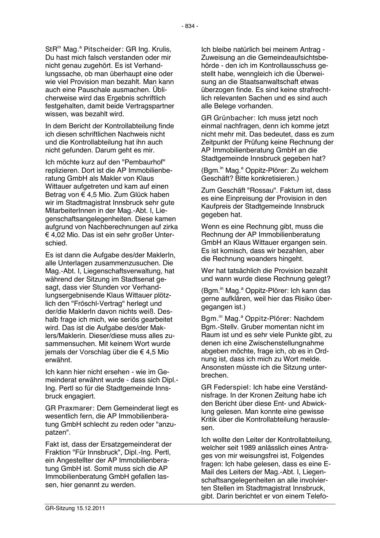Ich kann hier nicht ersehen - wie im Gemeinderat erwähnt wurde - dass sich Dipl.Ing. Pertl so für die Stadtgemeinde Innsbruck engagiert.